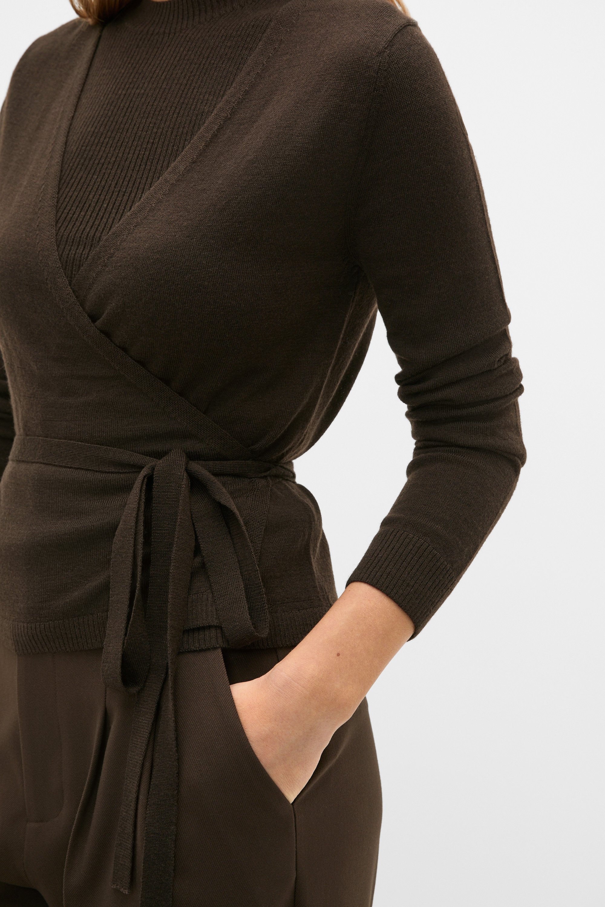 A flattering design to elevate your everyday wear, this knit set is crafted in premium Australian Merino wool and is destined to become a new favourite in your wardrobe. It features two tops designed to wear together, a ribbed tank and a wrap top with long sleeves that secures with a tie around the middle.
