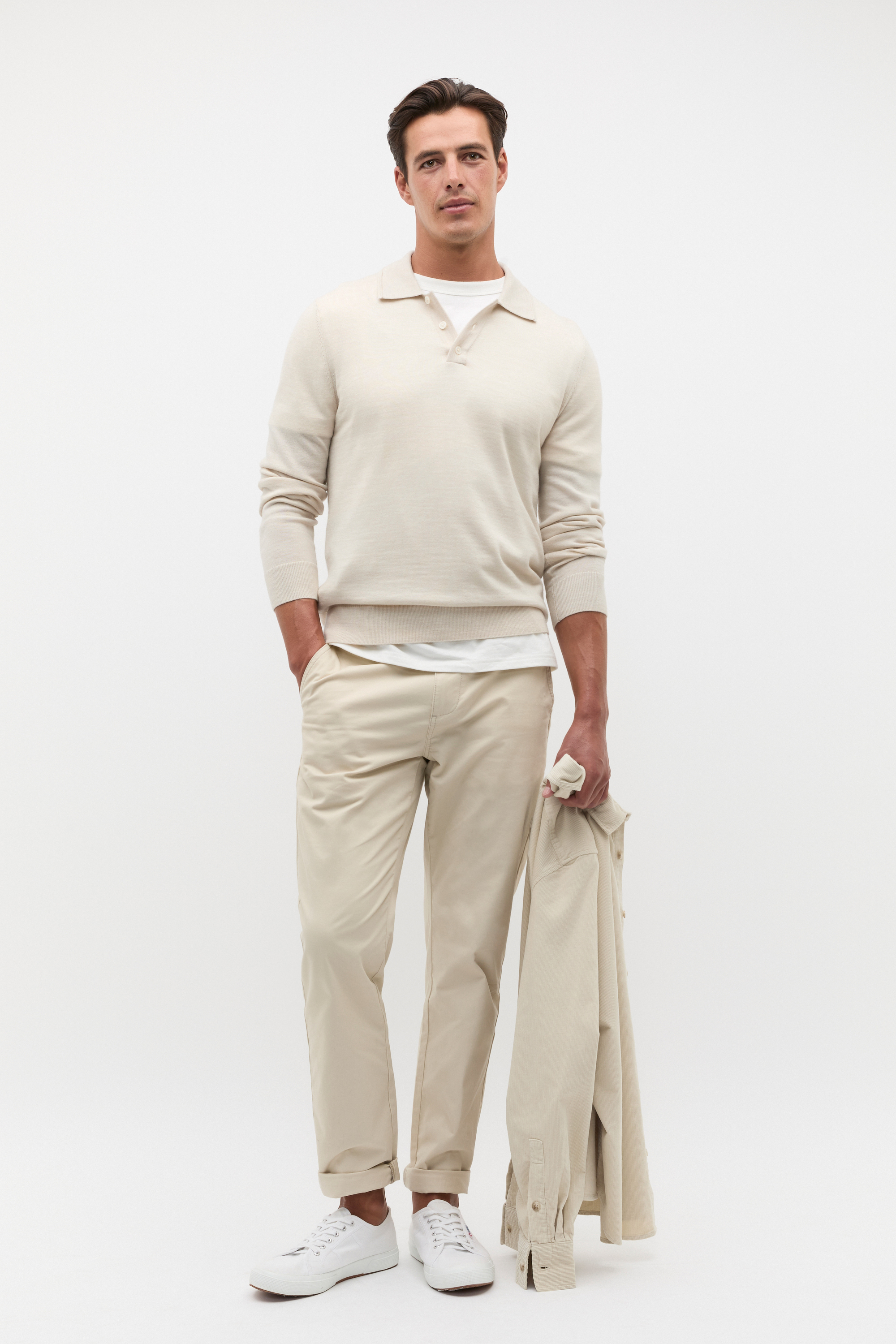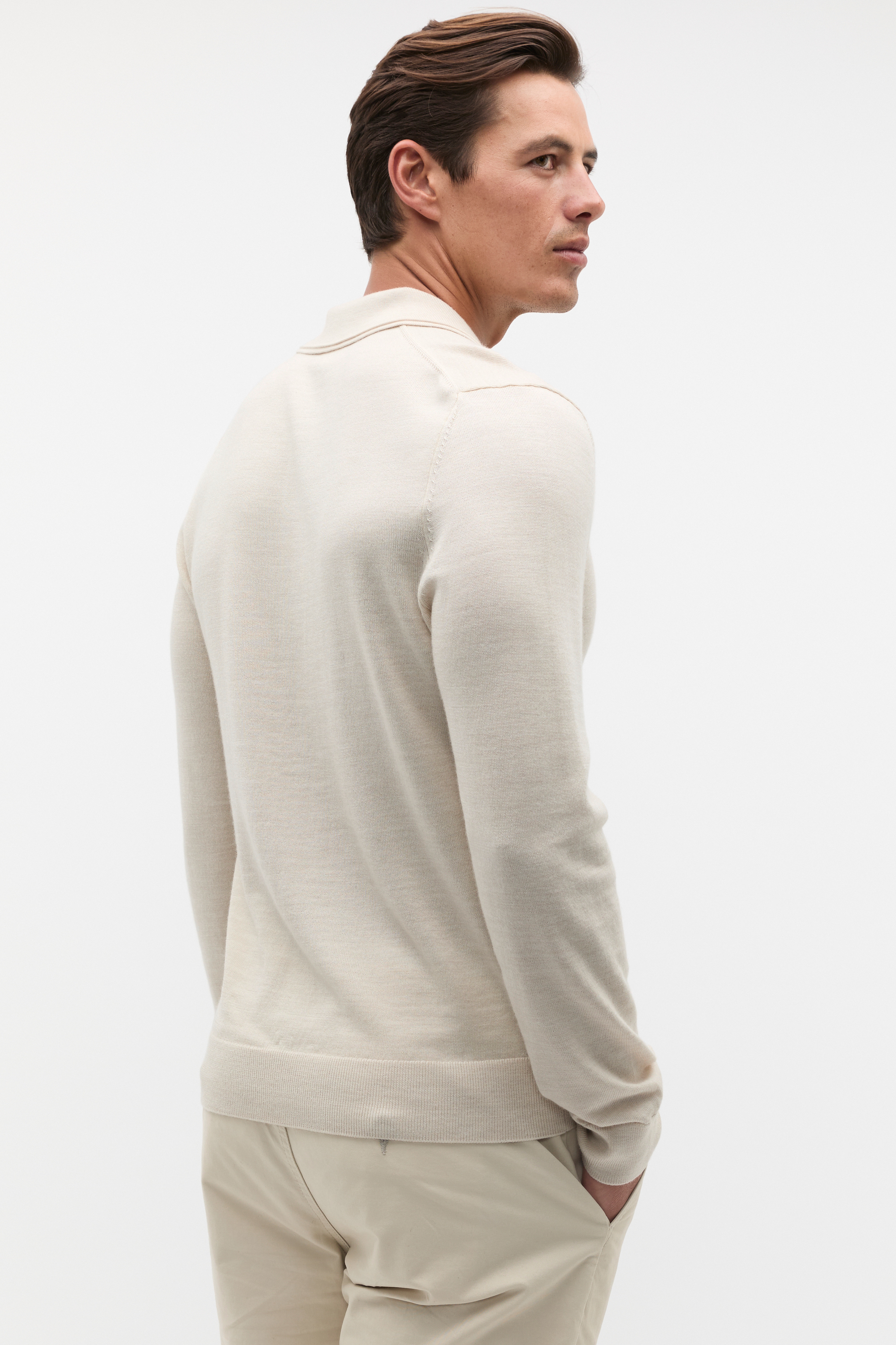 An on-trend option for his winter wardrobe, this polo has a soft and luxurious finish to elevate his every day. Crafted in premium wool, it features a button collar, long sleeves with elasticated cuffs and an elasticated trim.