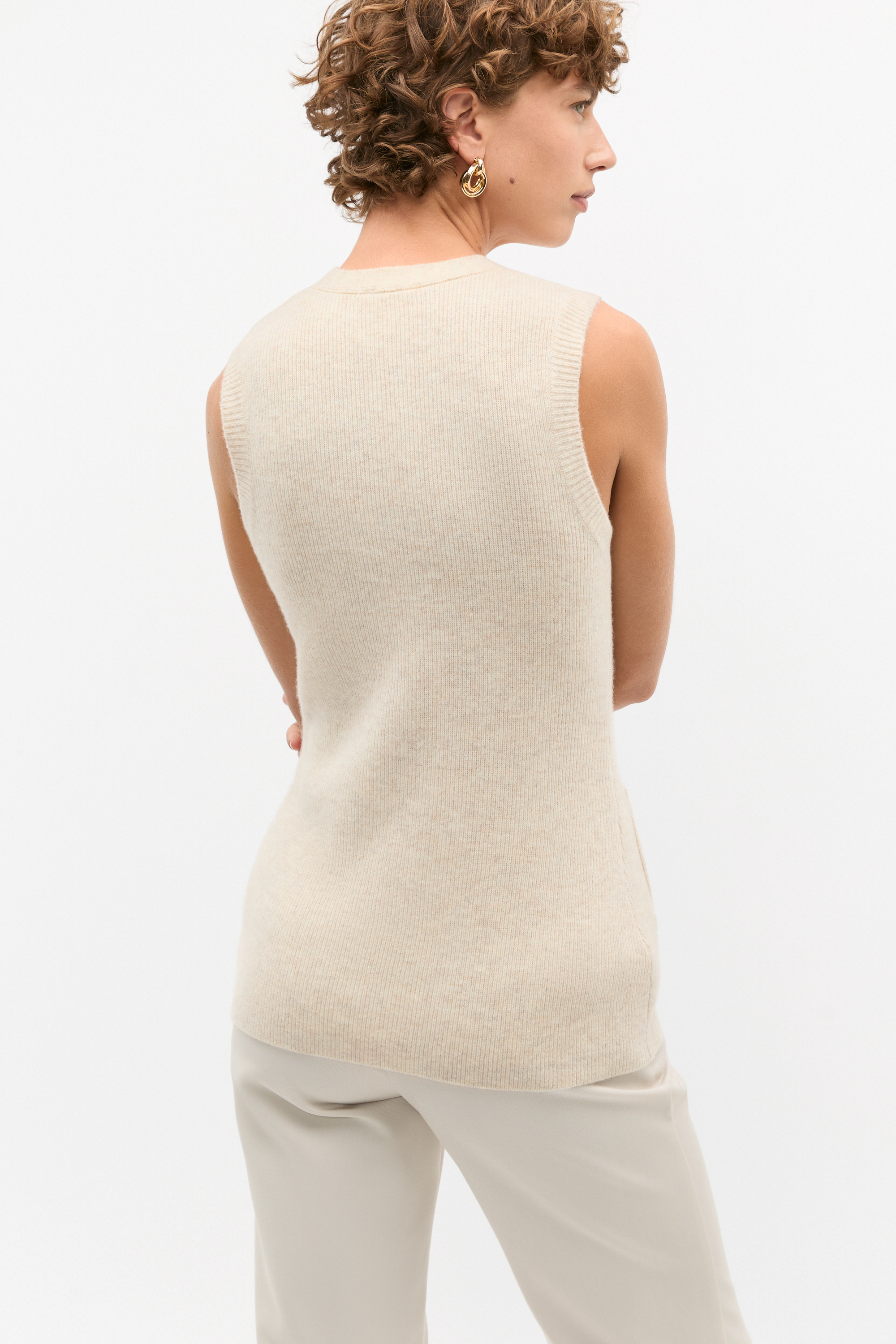 Merino Wool V Neck Button Vest  Oat Marle  hi-res