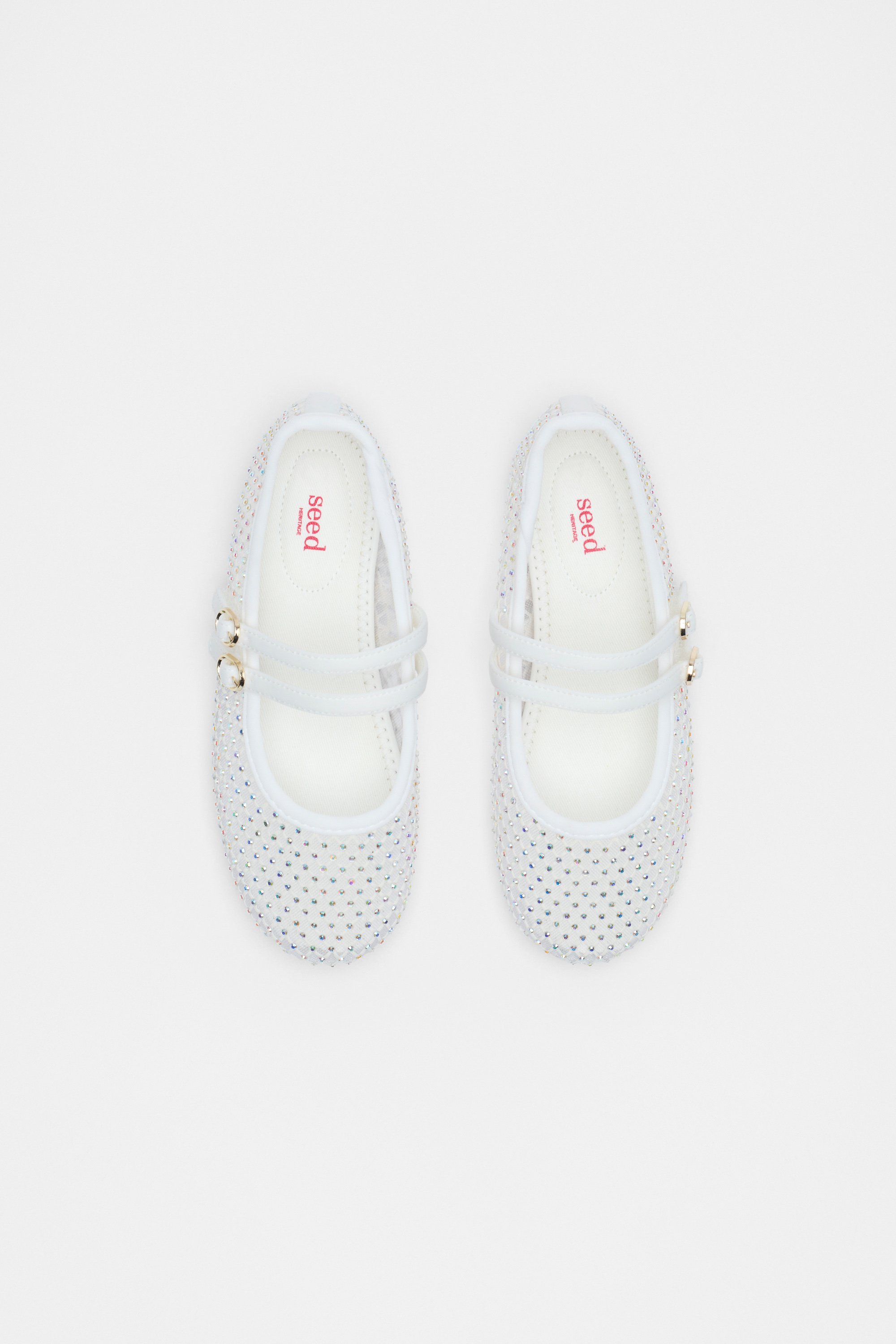 An on-trend style for her little wardrobe, these ballet flats are sure to be her new favourite. They feature double Mary Jane straps and a mesh design with all-over jewels for that extra shimmer.