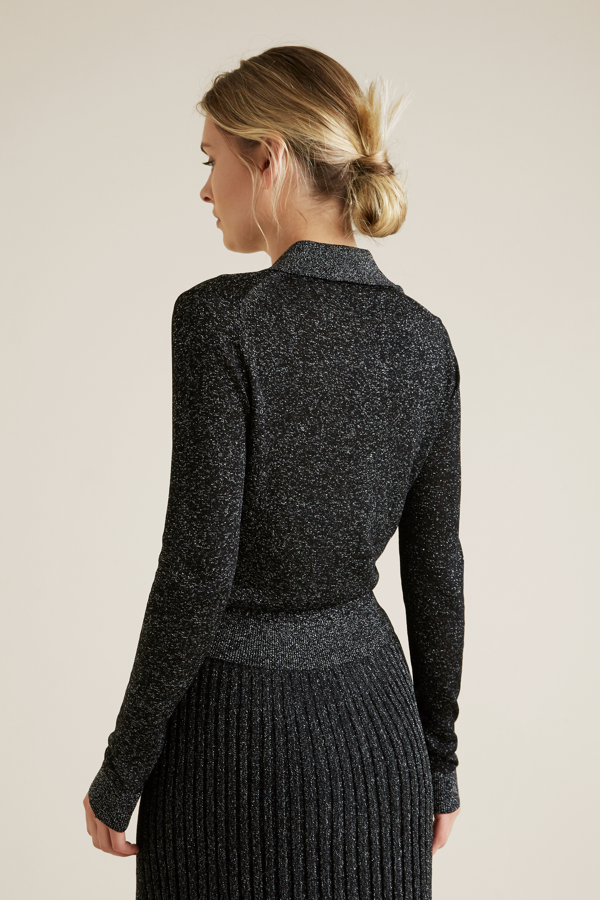 Add this Metallic Knit Polo to your winter repertoire.