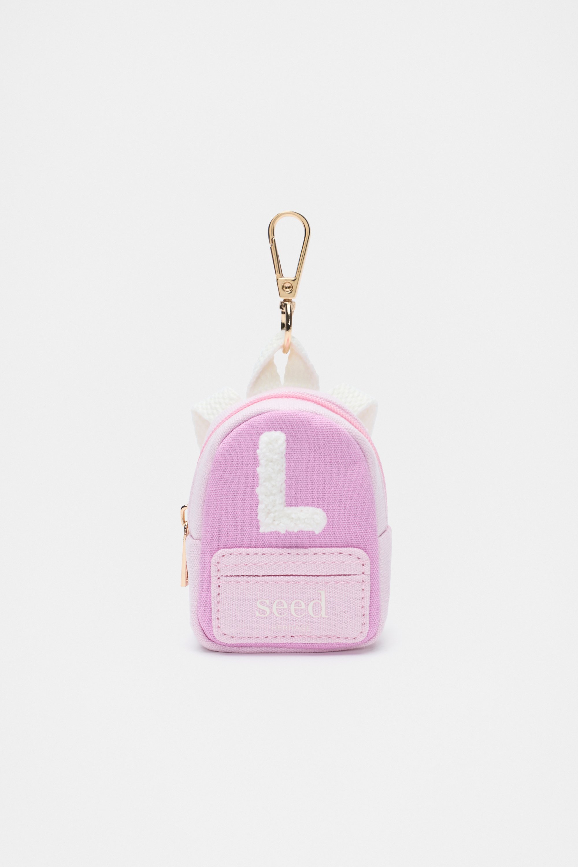 Cute and fun, this keyring makes for a great personalised gift. It features a backpack design with a functional zip, a chenille initial, and a Seed Heritage logo detail, and attaches with a parrot clasp.