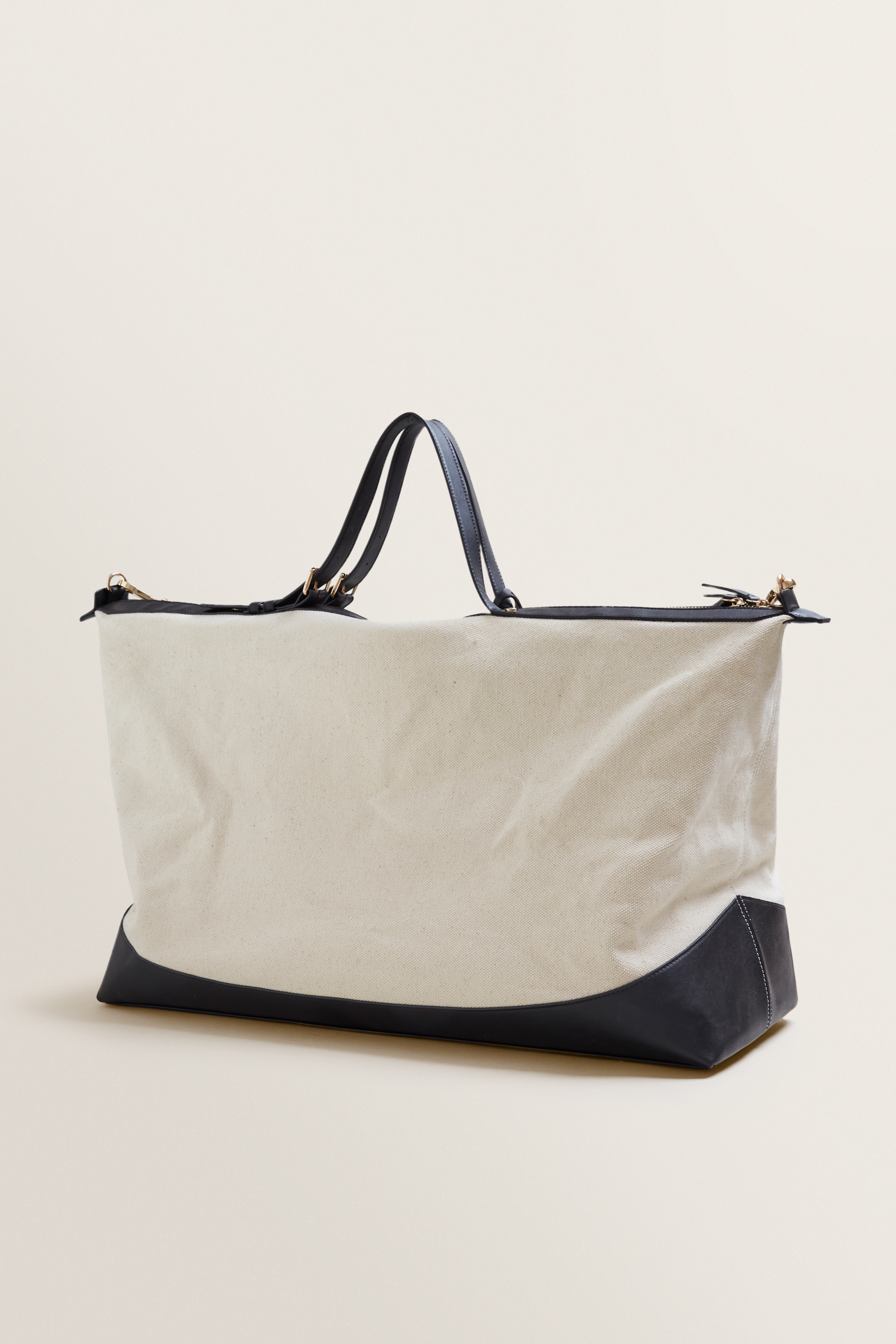 Crafted from a 100% sustainable recycled cotton, this Mini Break Overnighter features contrast leather-look trims, zip closure, top handles and an adjustable shoulder strap.