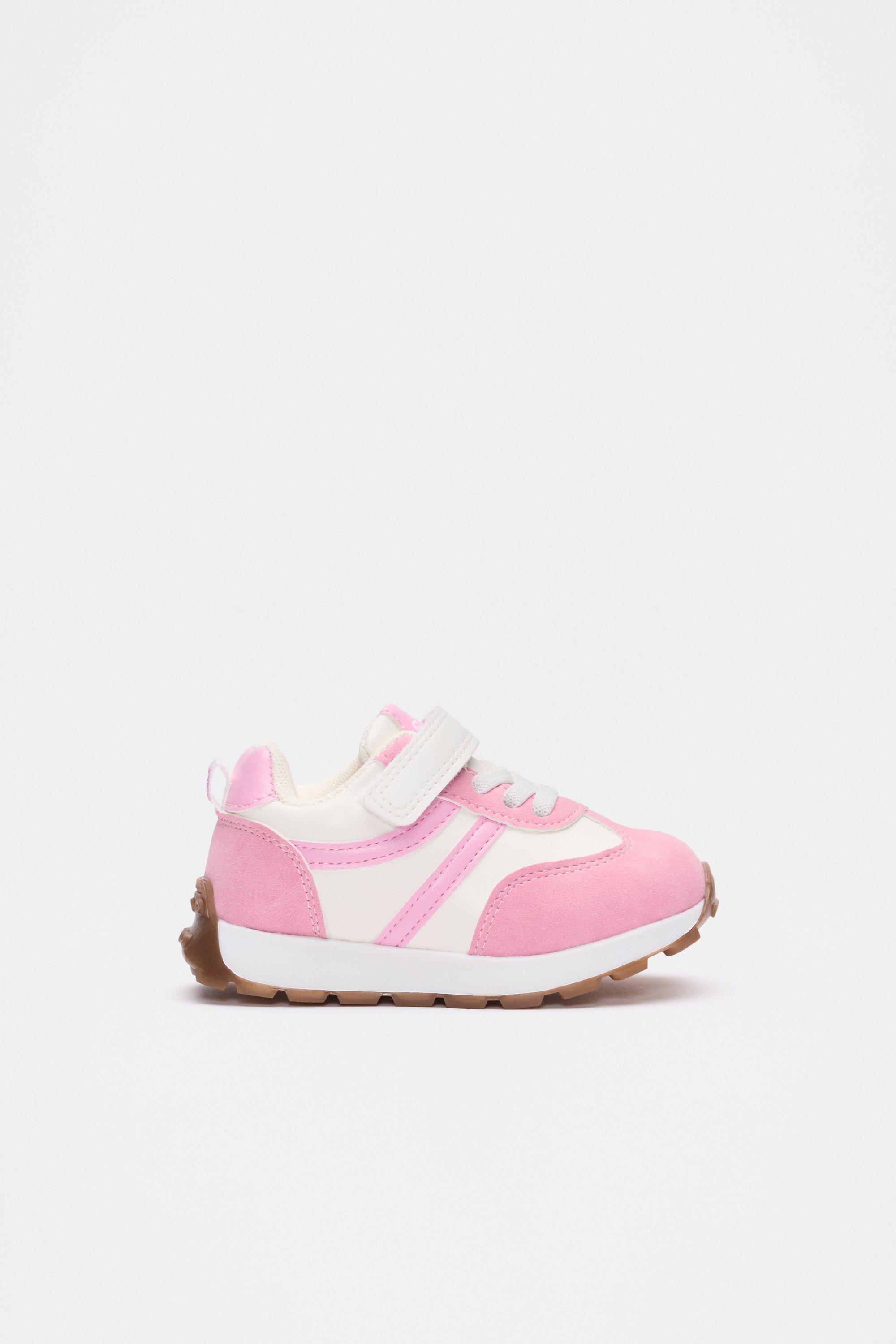 Sporty, cool, and ready to move in, these sneakers are set to be their new favourite pair. A lace up style, they feature a comfortable rubber sole, suede panels and a tab that secures with a hook-and-loop closure. They also have a pull-tab for easy wear.