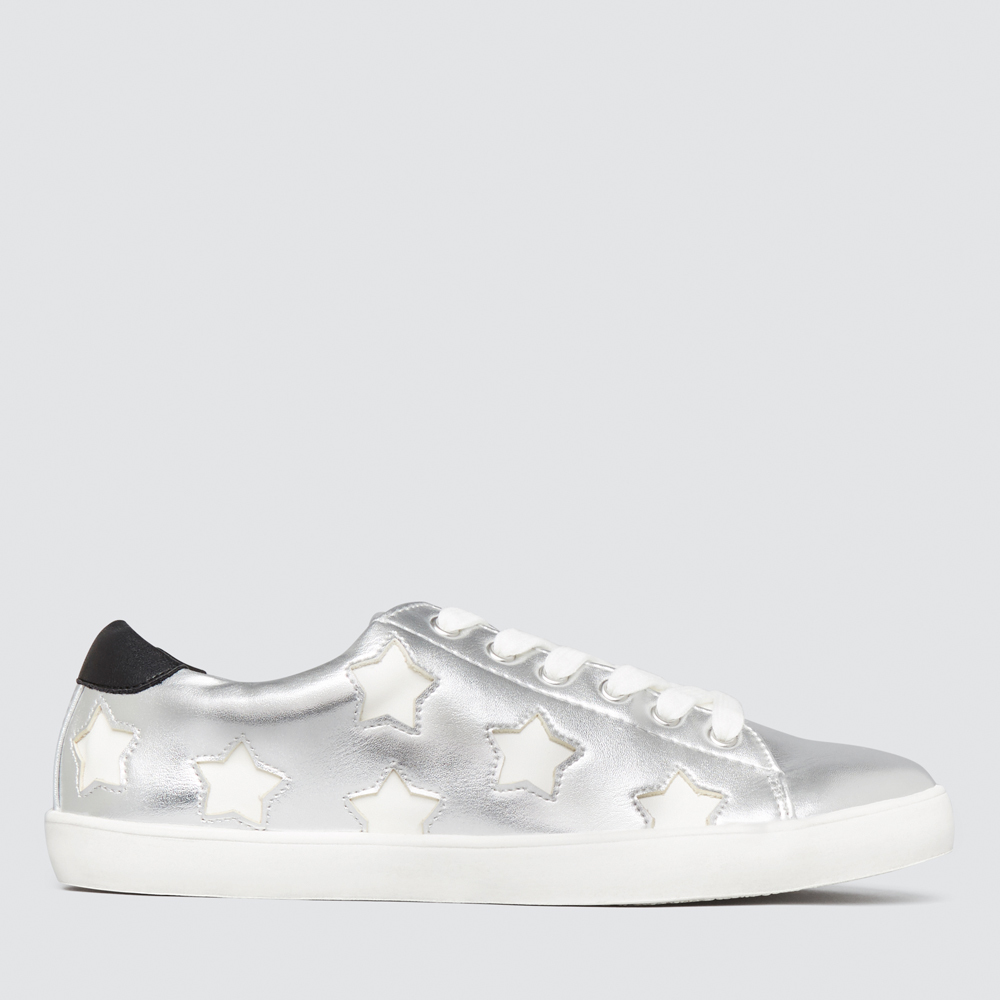 This whimsical teen trainer is perfect for budding streetstyle stars. In a lace-up design with a padded silver body and fun white star pattern, it can be dressed up or down for maximum versatility. Made with a PU upper and a synthetic sole, this piece is available in Metallic and in sizes 34 to 40.