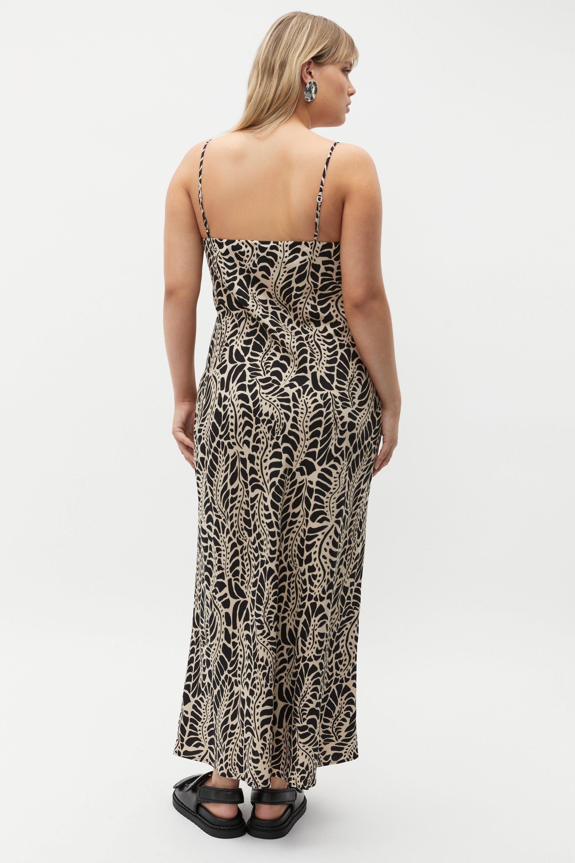 An effortless head-to-toe look, this slip dress is summer-ready and perfect for your next event. In a statement print, it features a straight neckline, spaghetti straps and falls to a maxi length with a subtle flare.