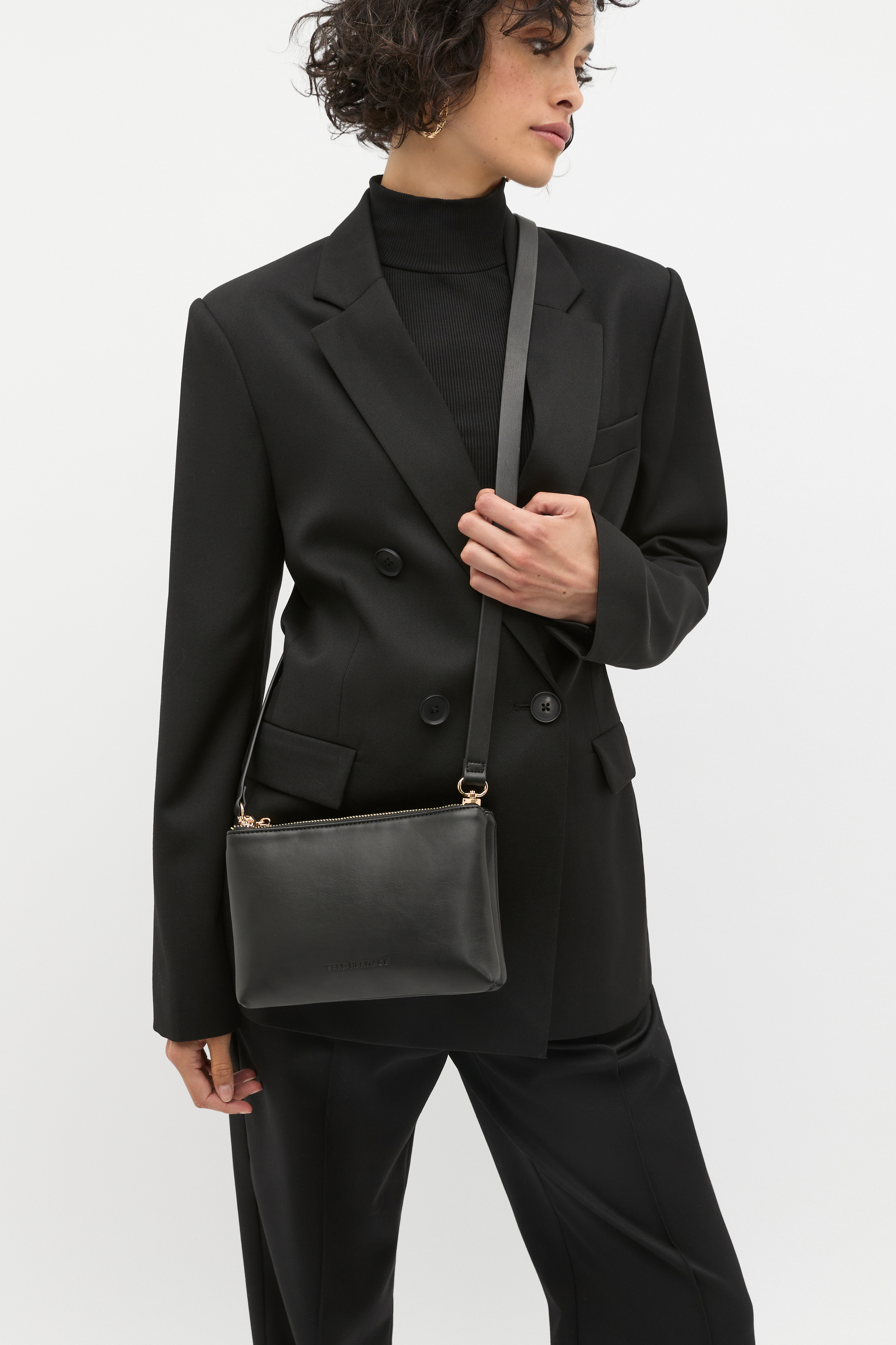 Chic and convenient, this crossbody bag offers understated style to your everyday wardrobe. It features two zip closures at the topline and a detachable crossbody strap. With both an internal zip pocket and slip pocket, it offers ease and convenience.