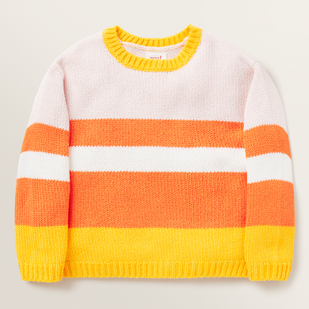 This Multi Stripe Sweater features a fashion forward multi-coloured striped print and is an essential for the modern Seed Girl. It is detailed with an oversized body fit, long sleeves and a ribbed crew neckline. This Multi Stripe Sweater is made from a cosy Cotton/Acrylic/Nylon blend. This Stripe Rib Tee is available in sizes 2 to 10. For care instructions, check the label inside the garment.