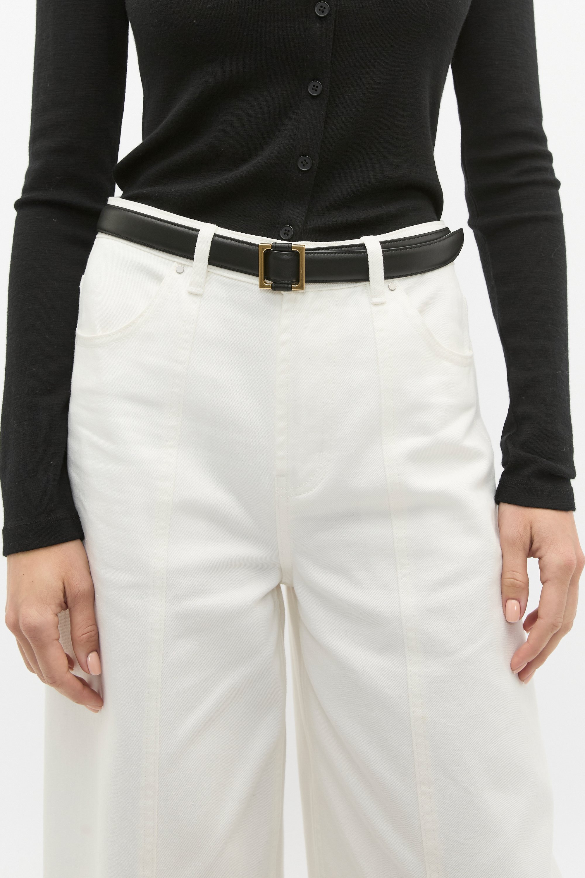 Offering a sleek finishing touch to your look, this belt features a gold-look buckle and is crafted from 100% premium leather.