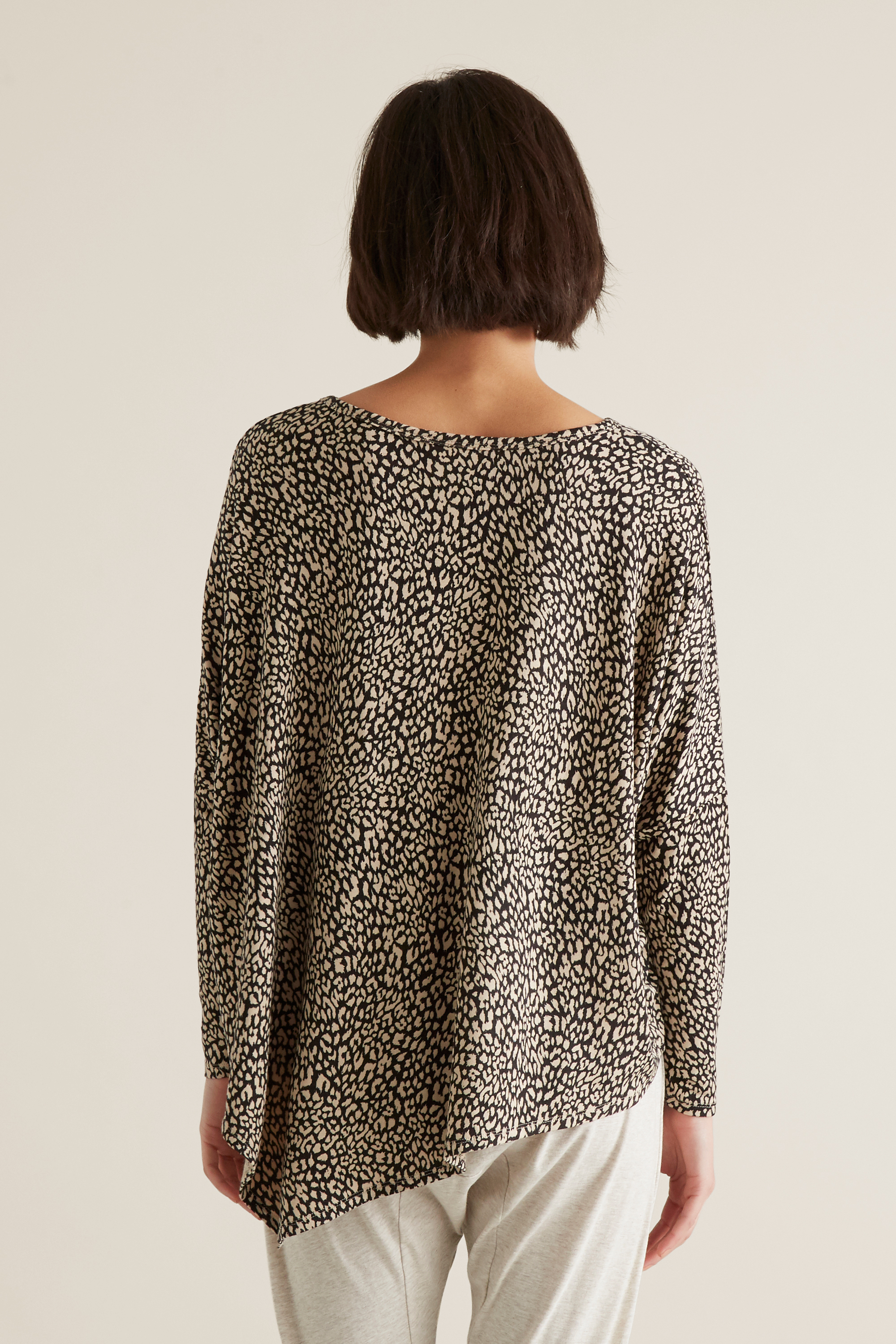 This Ocelot Asymmetrical Sweater exudes a laid-back luxe feel.