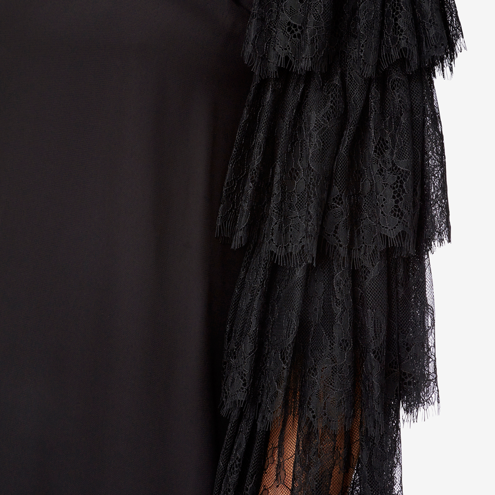 With a flattering off the shoulder neckline, this statement top features a relaxed fitting silhouette and a flowing body. Tiered sleeves with beautiful lace detail complete the feminine style. Made from viscose, it's available in black and in sizes 6 to 14. Our model wears size 8 and is 179cm tall.