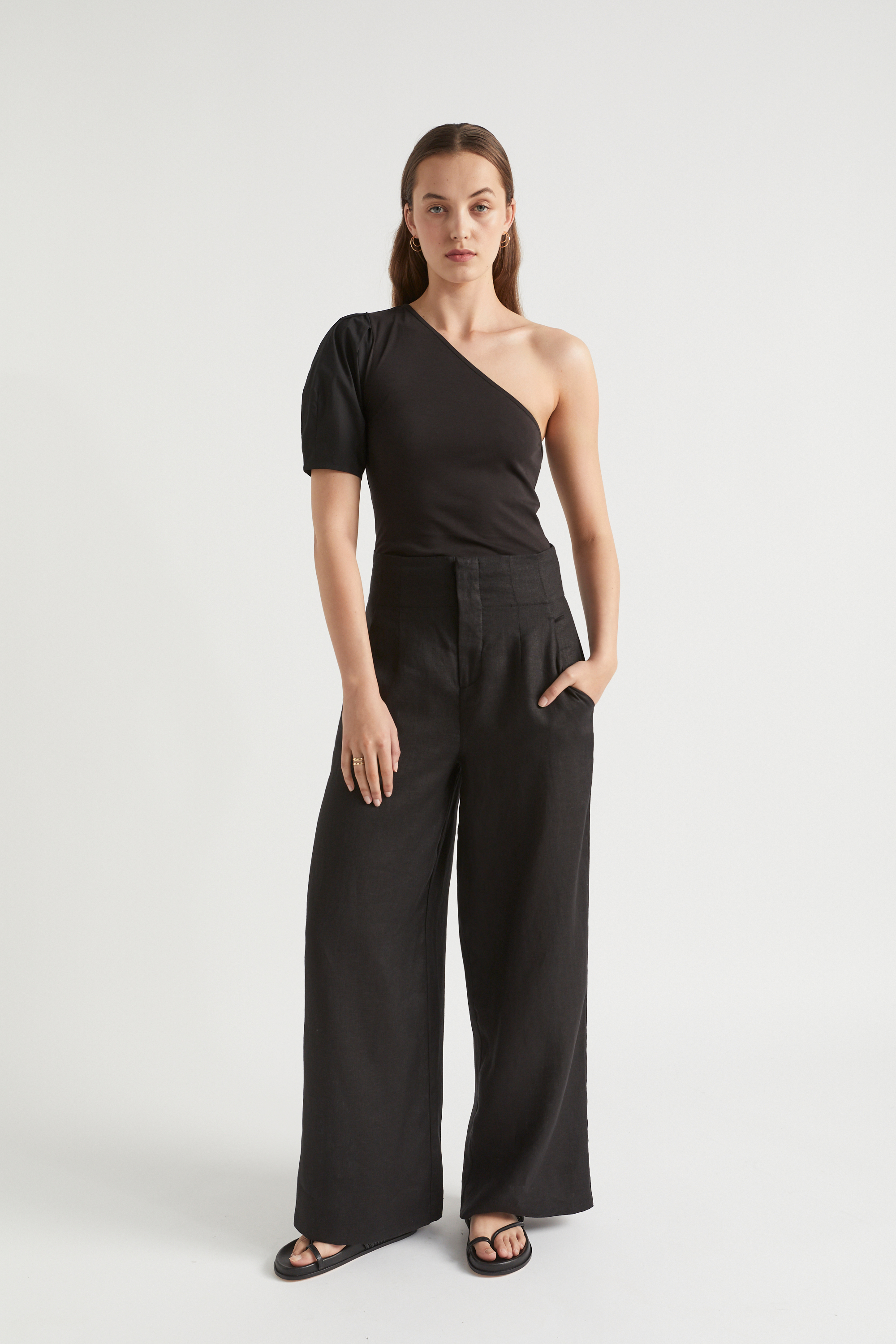 One Shoulder Poplin Sleeve Top  Black  hi-res One Shoulder Poplin Sleeve Top  Black  hi-res One Shoulder Poplin Sleeve Top  Black  hi-res One Shoulder Poplin Sleeve Top  Black  hi-res