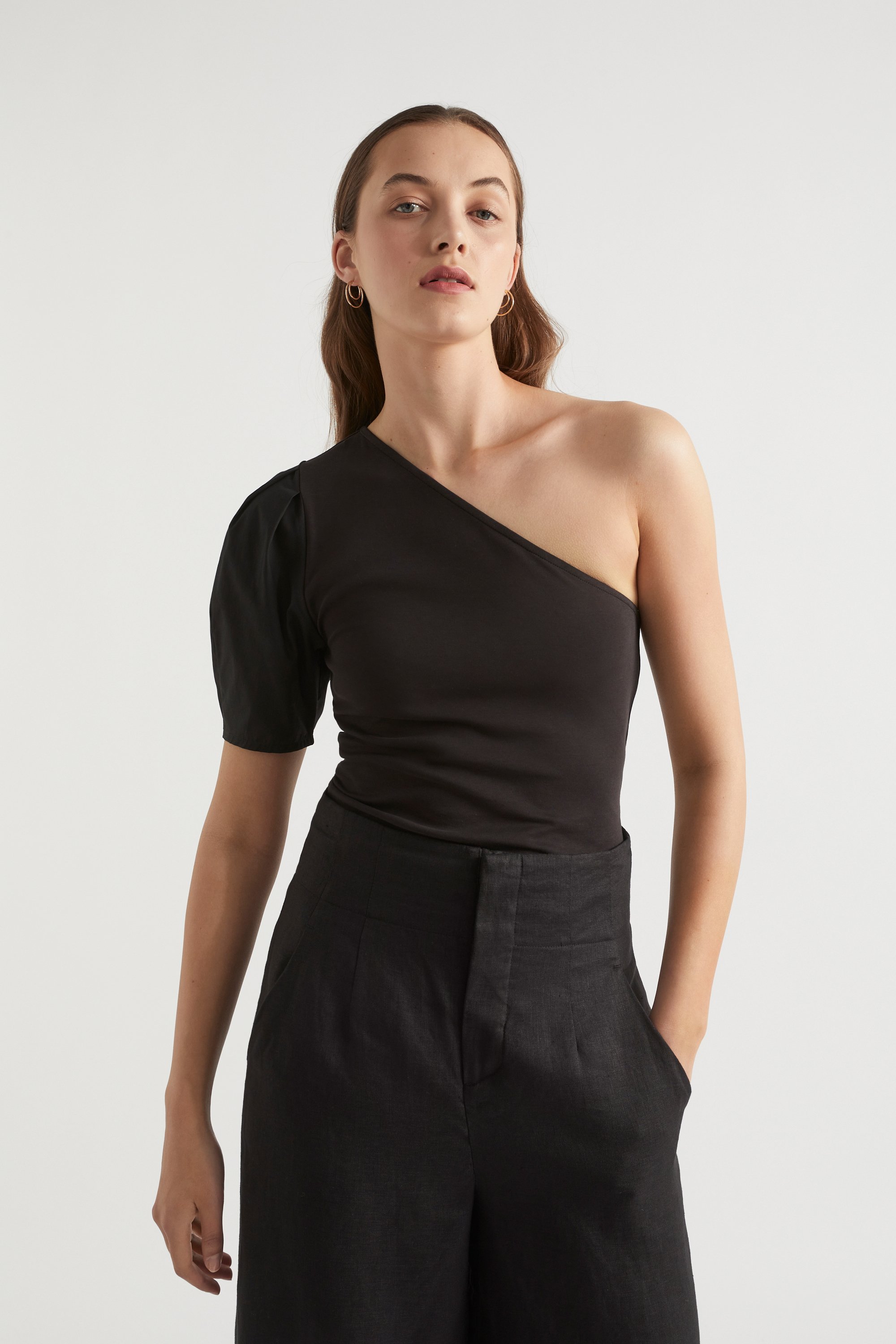 With a single poplin sleeve, this one-shoulder top makes a statement while offering style options. It has a jersey body with a neat fit, and is crafted from 100% cotton. By choosing our cotton products, you are supporting our investment in the Better Cotton mission.