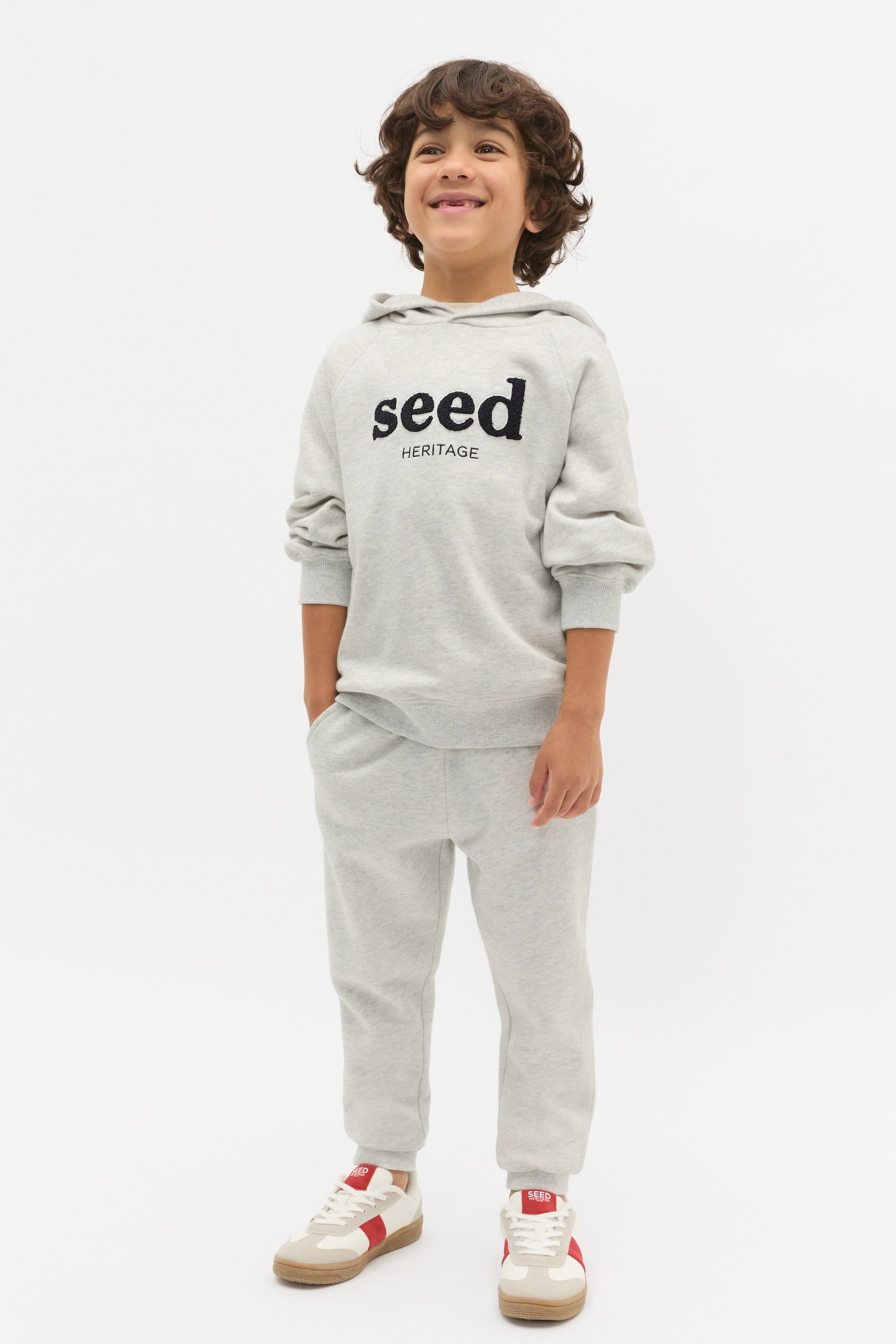 The perfect basic to build his winter wardrobe, this hoodie is a classic design ready to be worn on repeat. Crafted in a premium cosy cotton, it features a hood, long raglan sleeves with ribbed trim detailing and an embroidered chenille Seed Heritage logo. Coordinate his head-to-toe with the matching tracksuit pants for a comfy and cool set.
