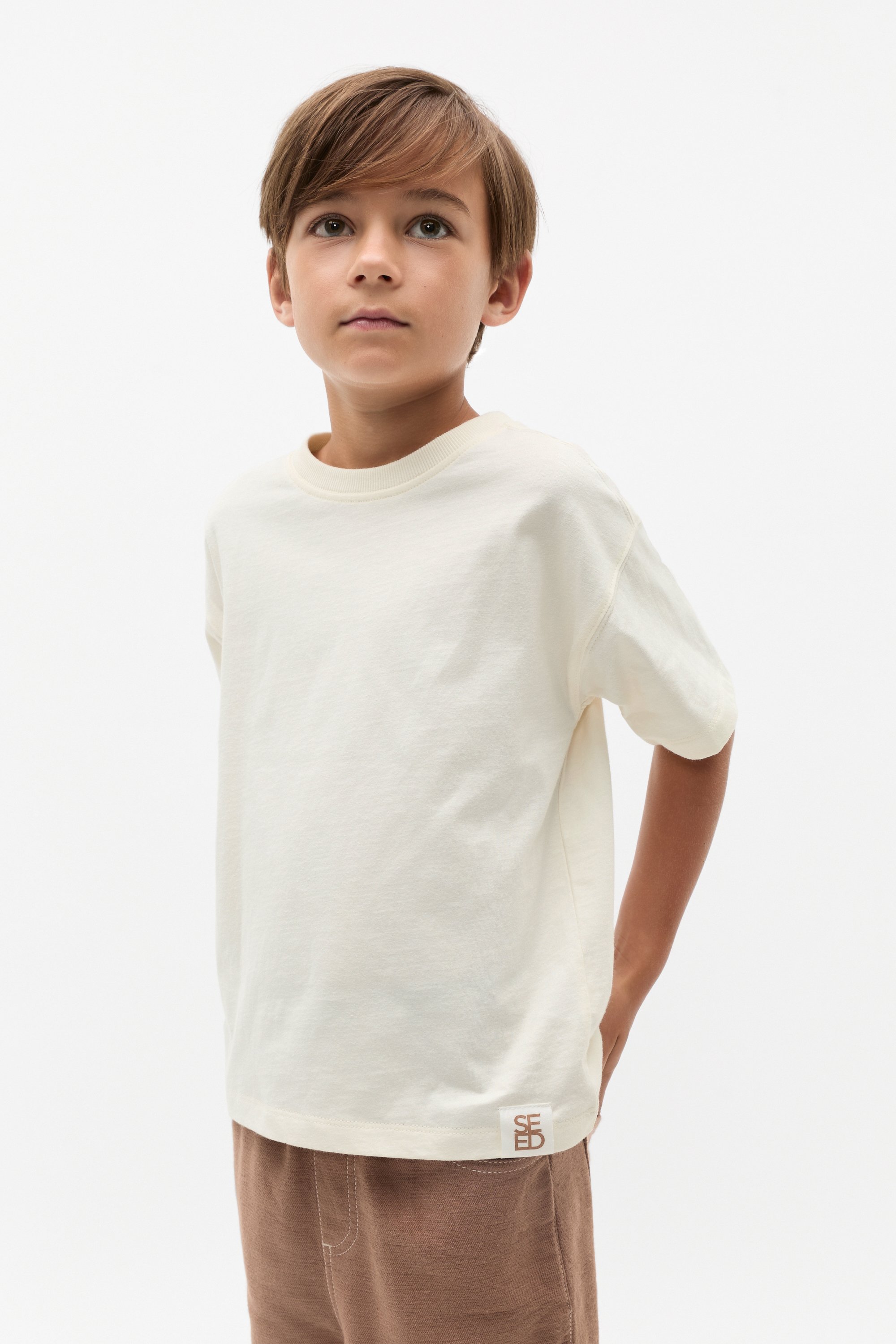 Comfortable and easy, this tee is set to be his new favourite. It features a round ribbed neck, dropped shoulders, a Seed logo patch at the hem, and an oversized fit. Crafted from breathable cotton.