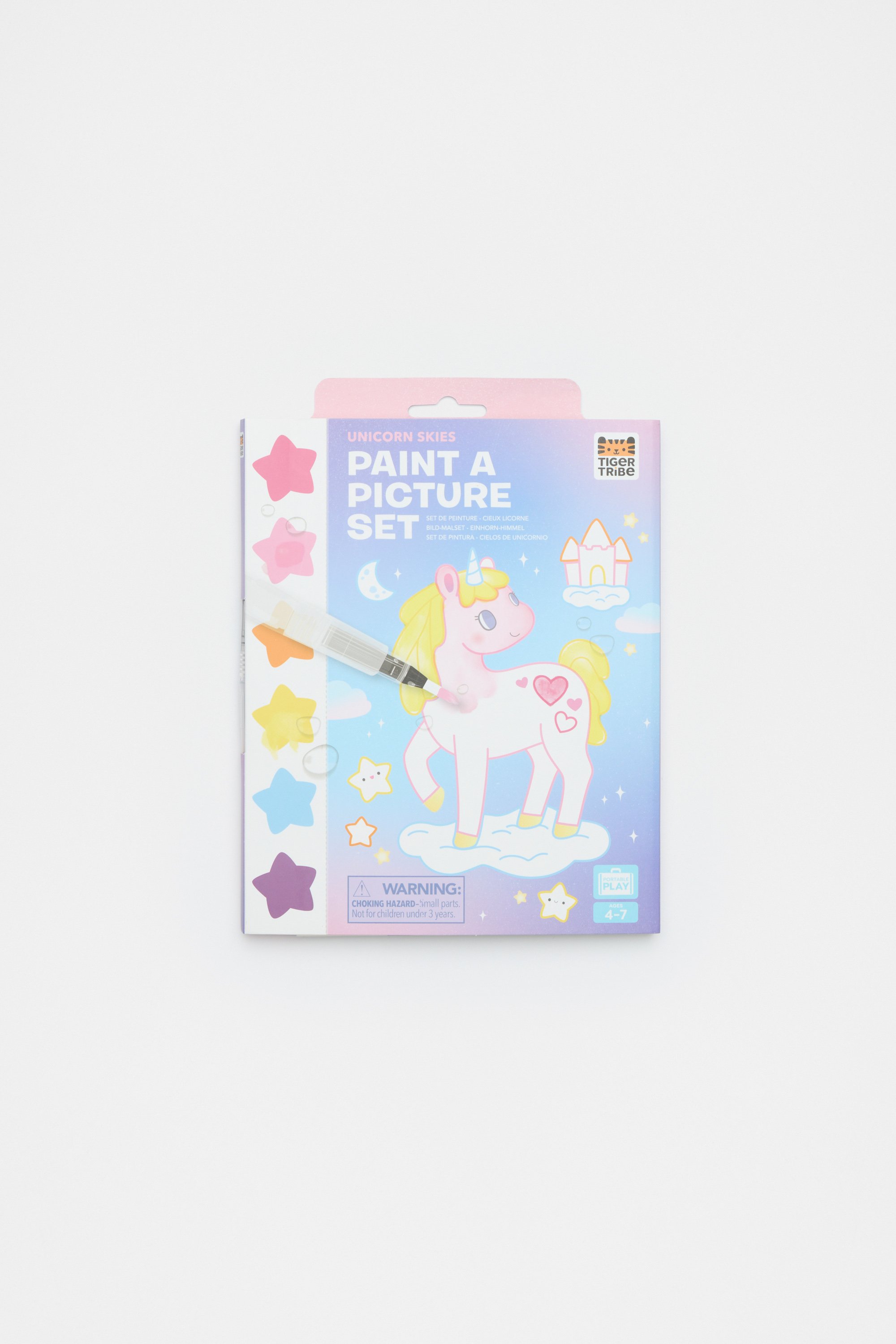 A creative activity for little artists, this all-in-one unicorn skies painting set includes 16 pages to paint with, and a magic water brush.
