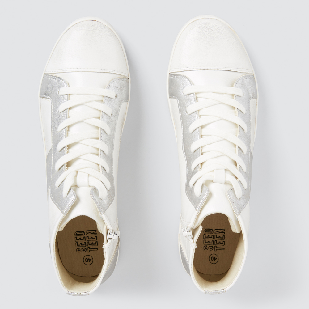 These hightops feature a all-over silver metallic panel design. Made from a PU upper and rubber sole, these hightops are available in White and in sizes 34 to 40.