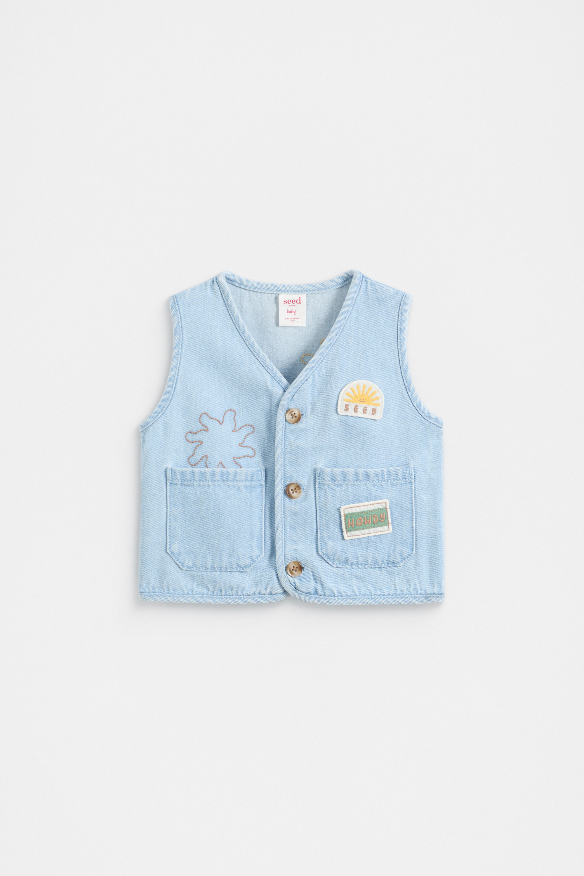 Patched Denim Vest  Light Wash  hi-res Patched Denim Vest  Light Wash  hi-res