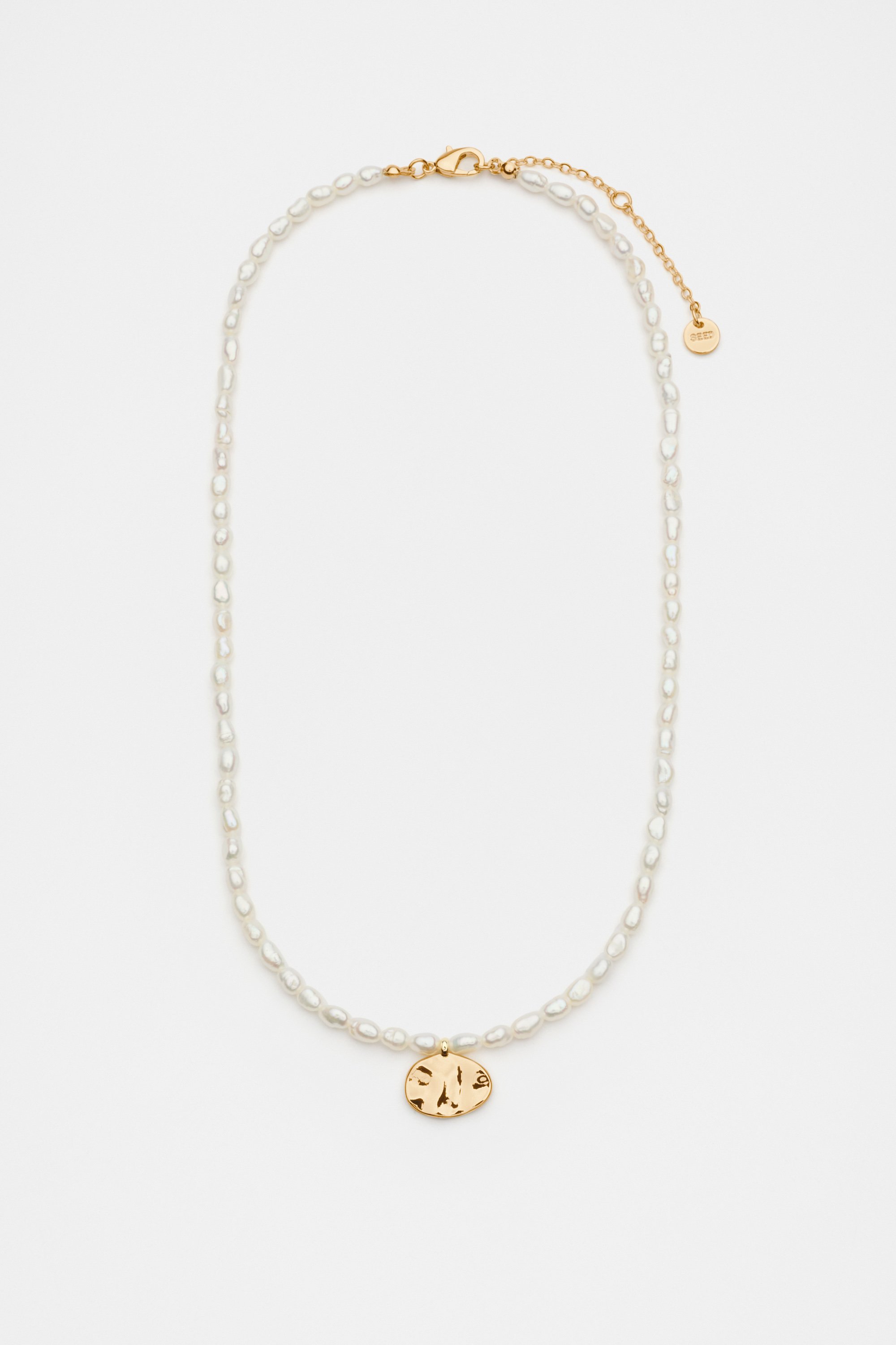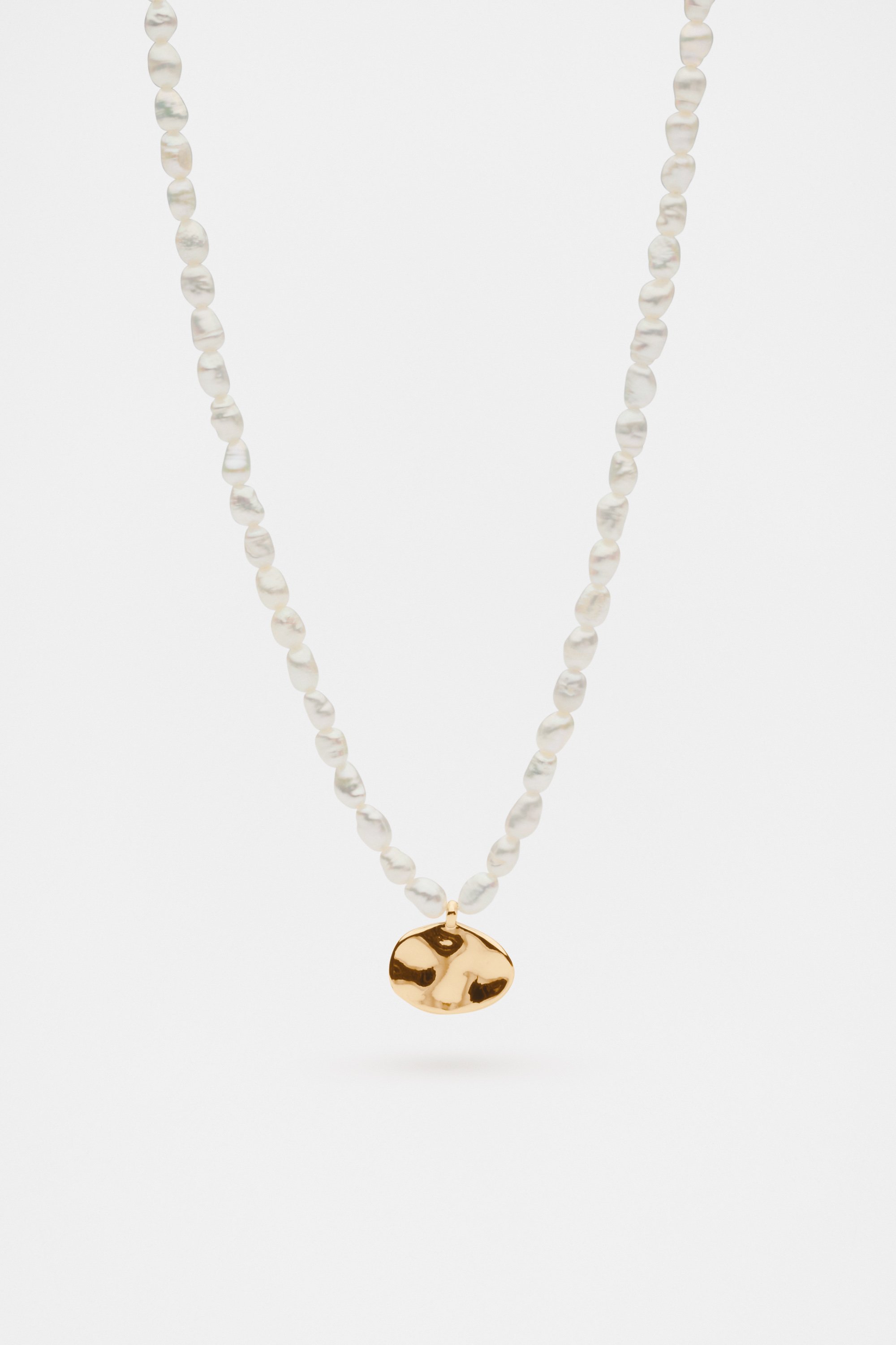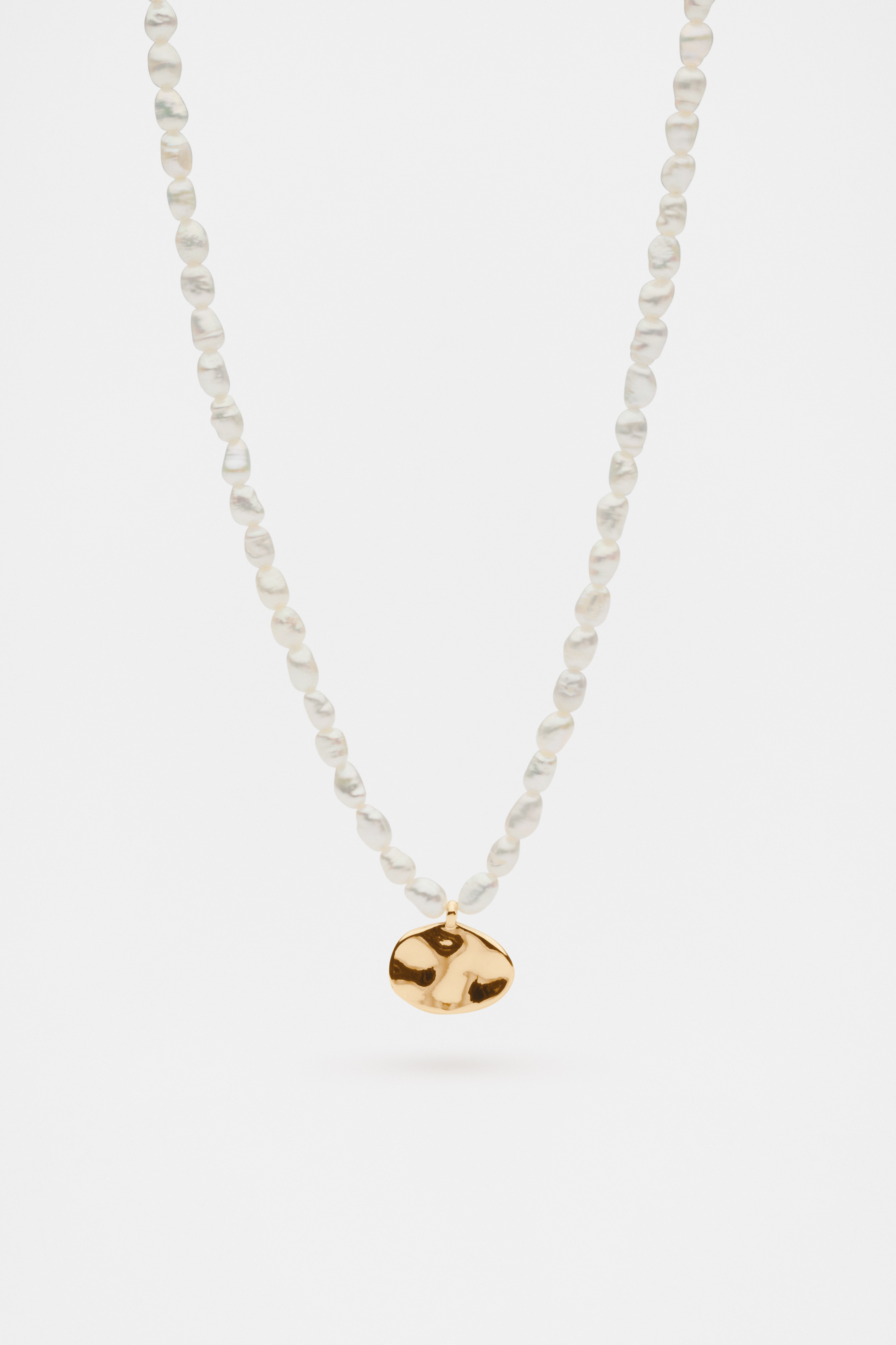 Add a little shine to your look with this elegant pearly pendant necklace. It features small freshwater pearls and a pendant with a molten finish. Style with the matching pearl styles for a look with a curated feel.
