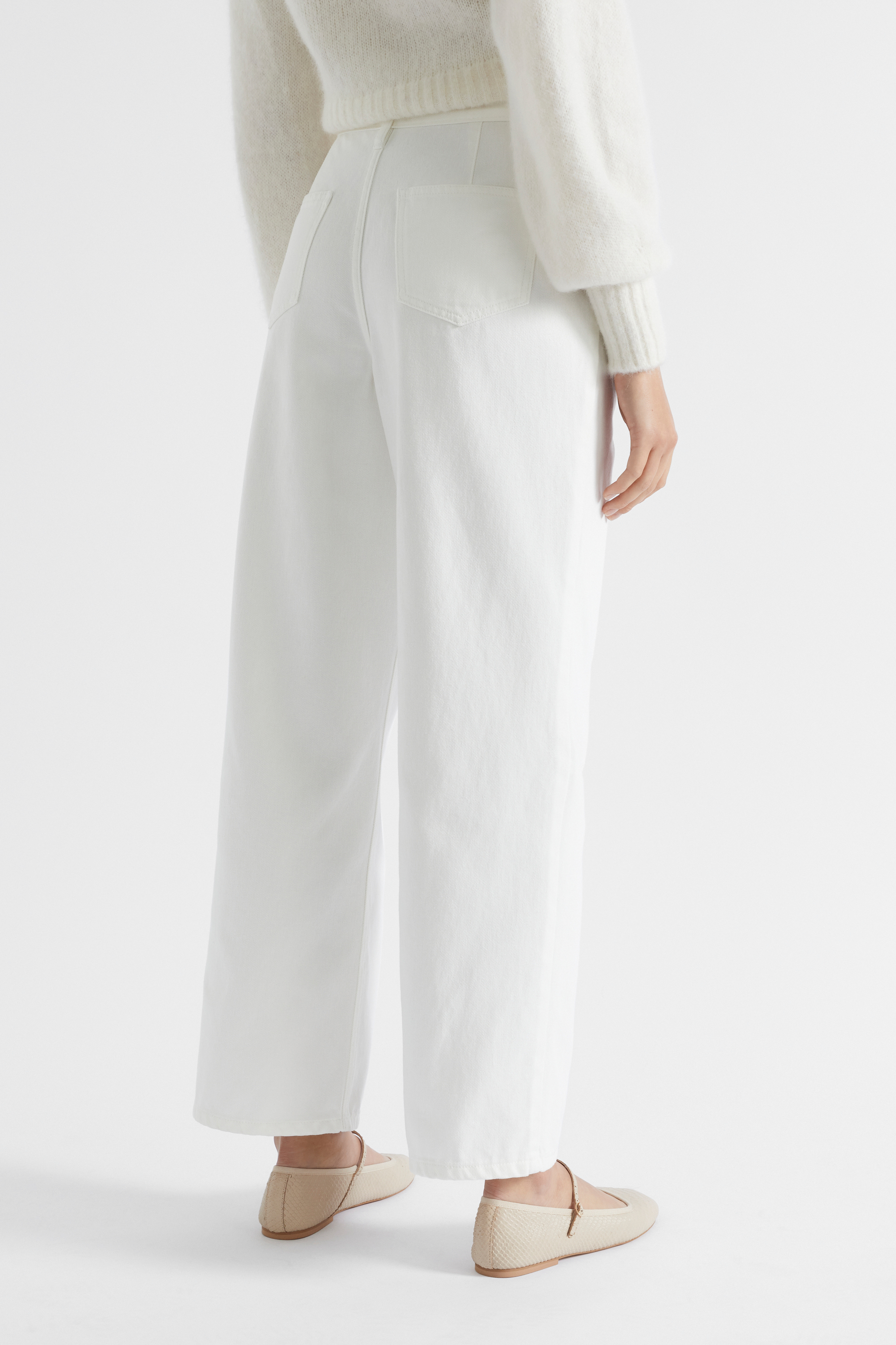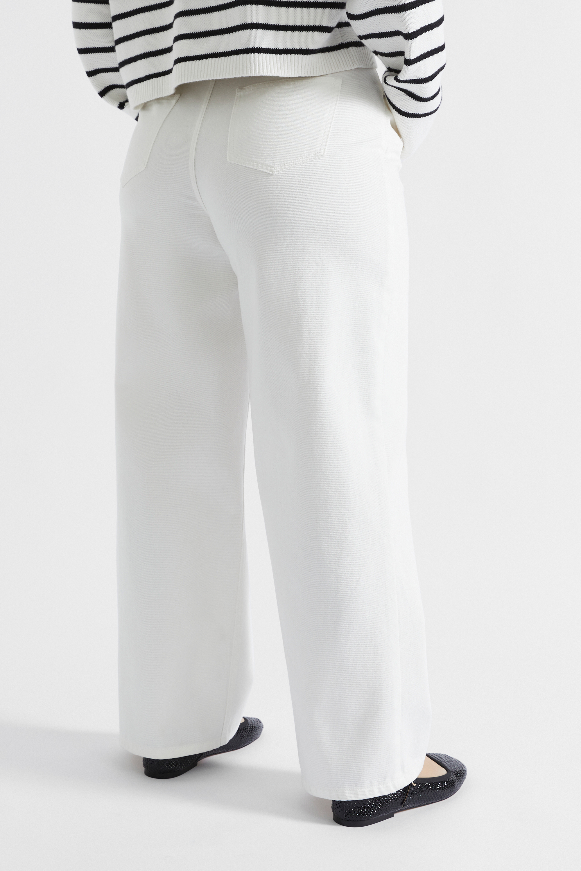 In a traditional rigid denim, these jeans are your next go-to style. They feature a button pinch detail at the waist, curved front pockets and back patch pockets, darting at the back for shaping, and a wide leg shape. By choosing our cotton products, you are supporting our investment in the Better Cotton mission.