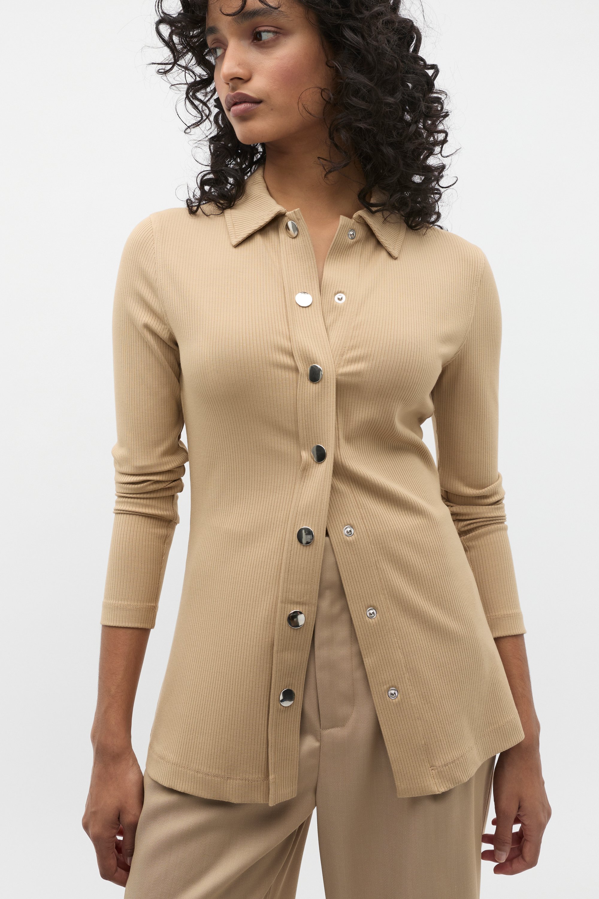 Update your casual wardrobe with this classic polo design. Crafted with a smooth ribbed blend, it features a collar, a statement metallic button placket and long sleeves. With a neat stretch fit through the body, it offers a sleek and refined look to your every day.