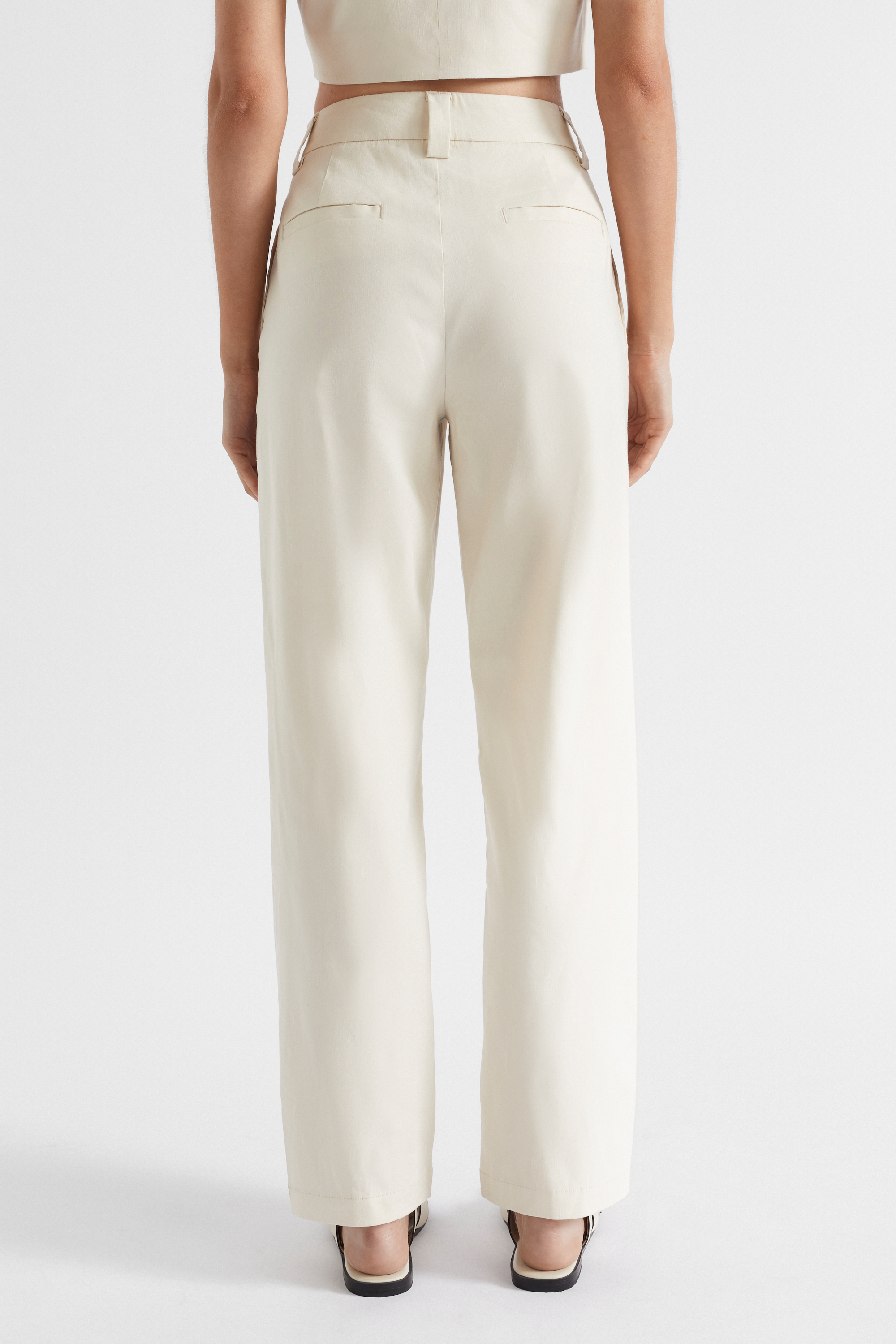 These linen-blend trousers are an essential building block for your wardrobe. They feature pleats at the front waist and fall in a straight leg profile. Pair with the matching wrap vest for a complete look.