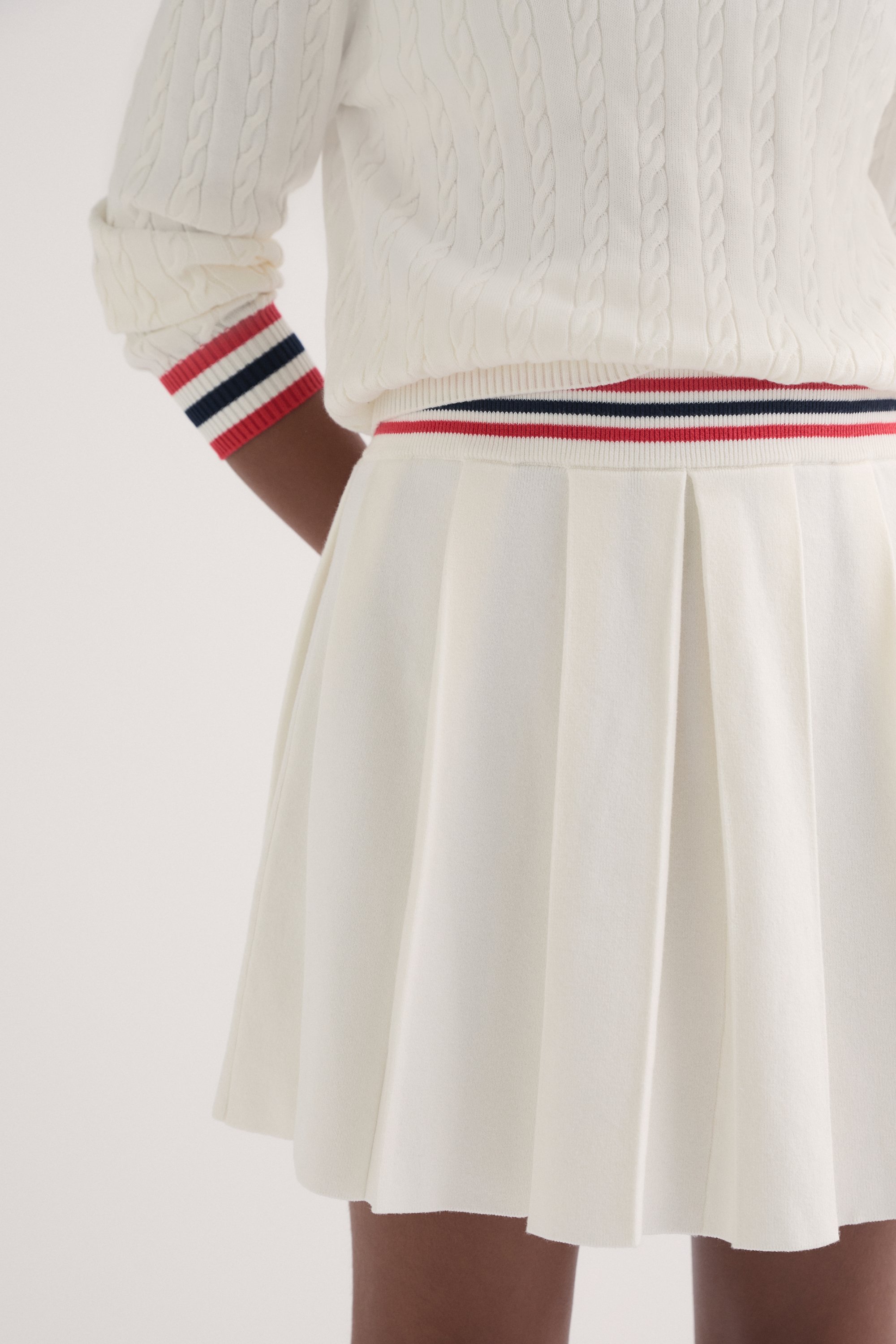 A classic sporting style, this pleated skirt elevates her casual wardrobe. Crafted in premium cotton, it features contrast trims and a knit finish. Style with the coordinating V-neck for a chic head-to-toe.