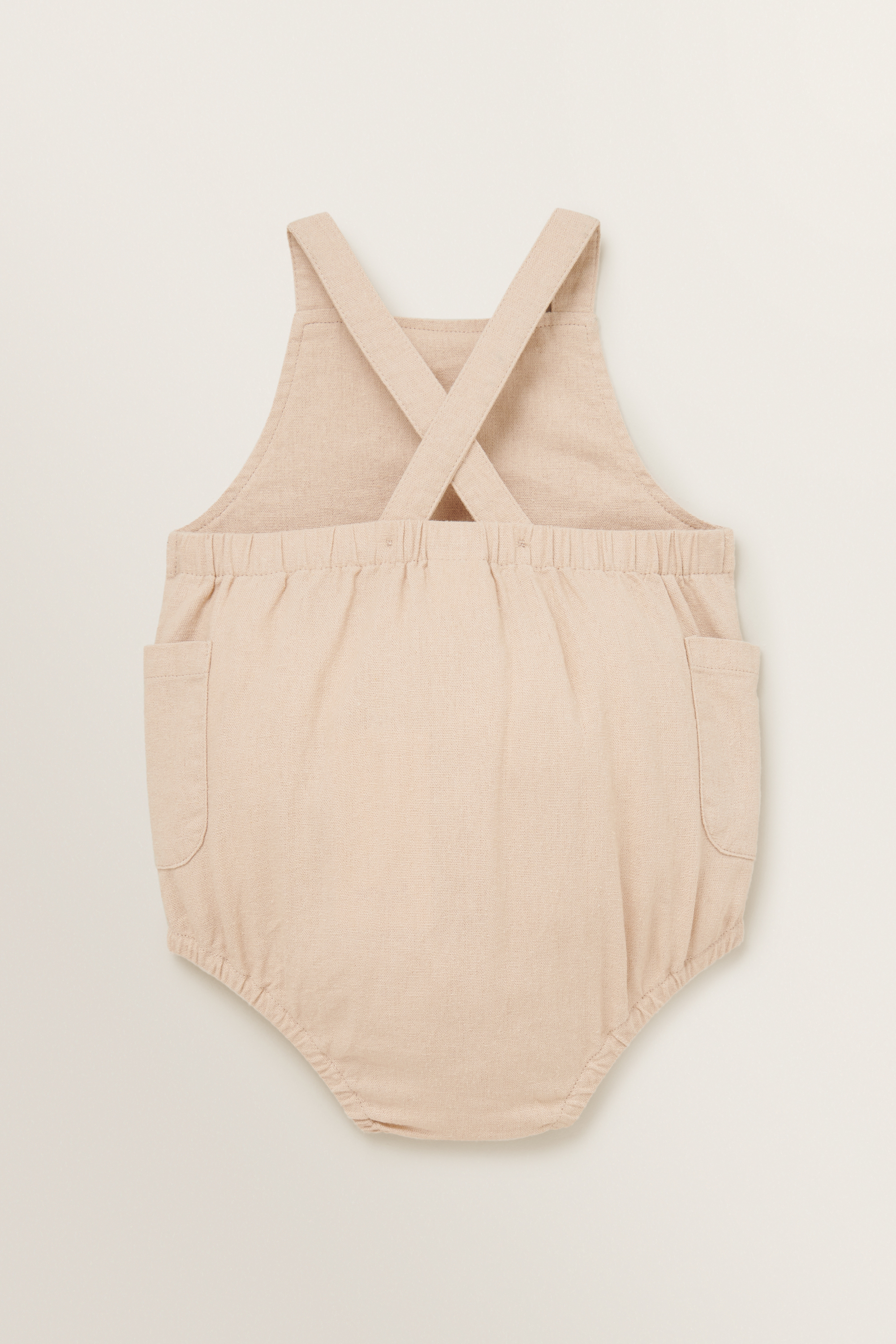 Featuring a breathable linen blend, this Pocket Romper is detailed with an elasticised waist, patch pockets and cross-over shoulder straps to simply put on overhead.