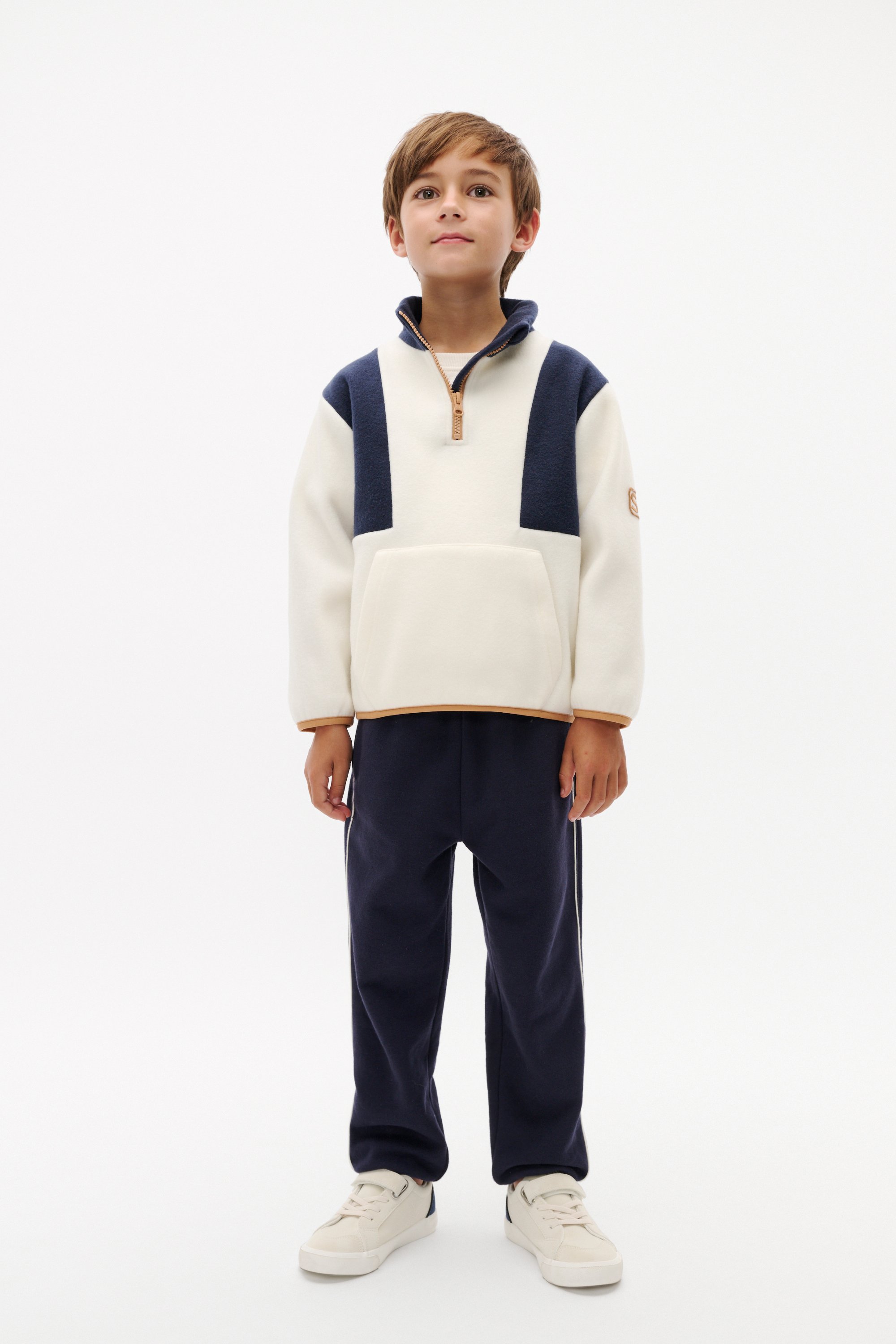 Cosy for the cooler months, this sweater is finished in an ultra-soft polar fleece. It features a high collar with a zip-up detail, long sleeves with contrast trims and a kangaroo pouch.