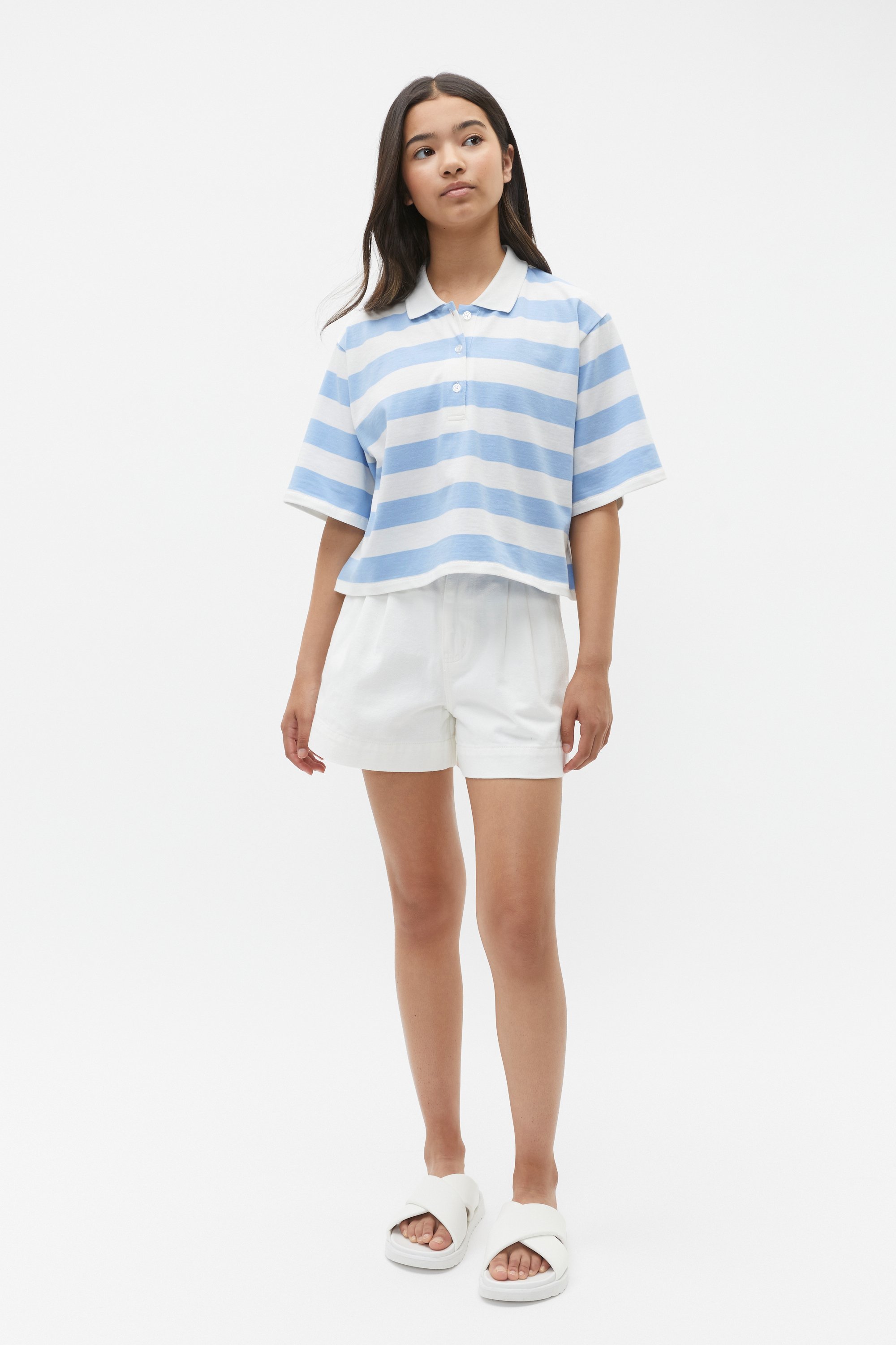 A chic addition to her casual wardrobe, this polo features a stripe design, short sleeves and a cropped length.