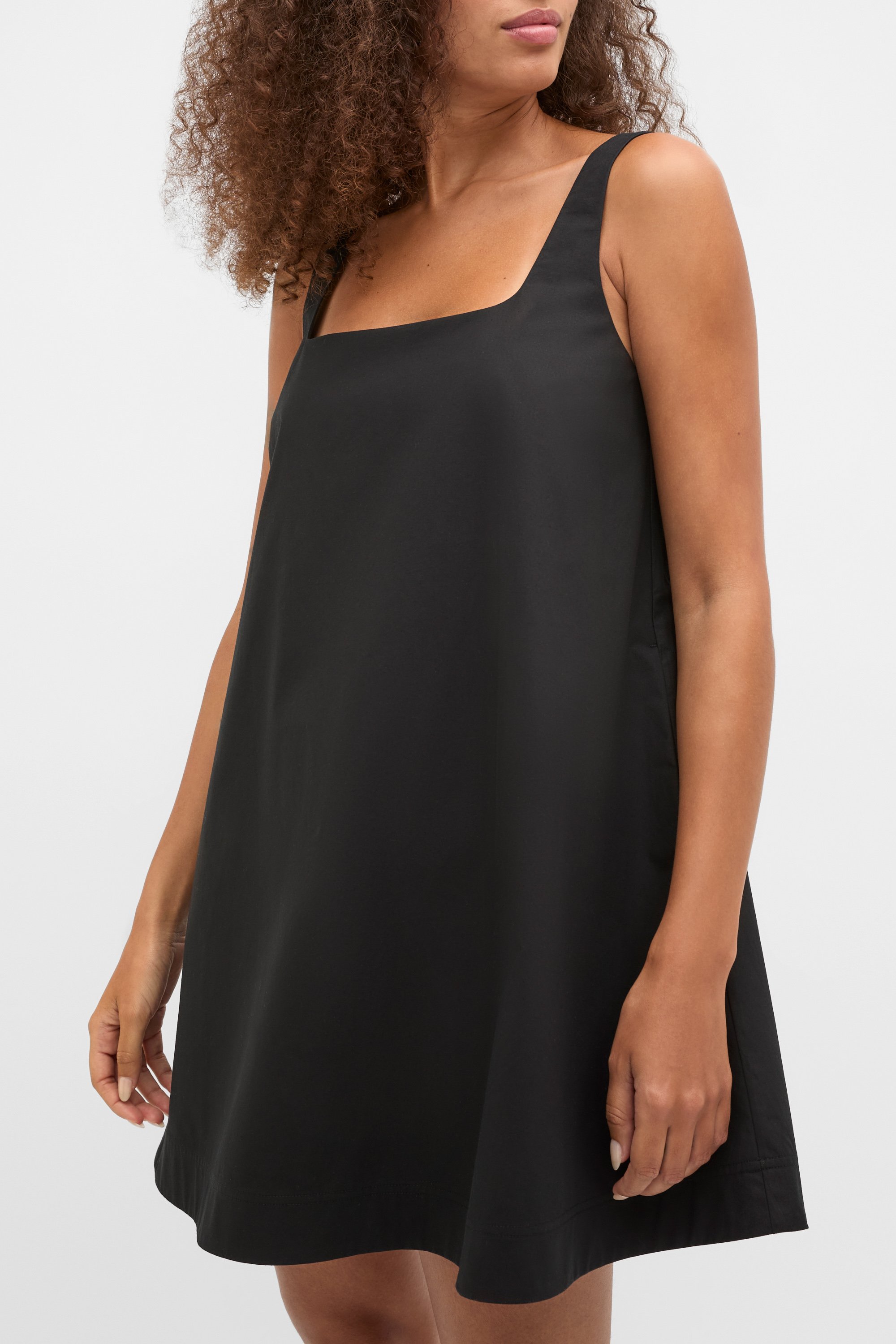 A chic option for your weekend style, this mini dress is a new season must-have. Crafted in premium cotton with a crisp poplin finish, it features a square neck, slim straps, pockets and falls to a mini length.