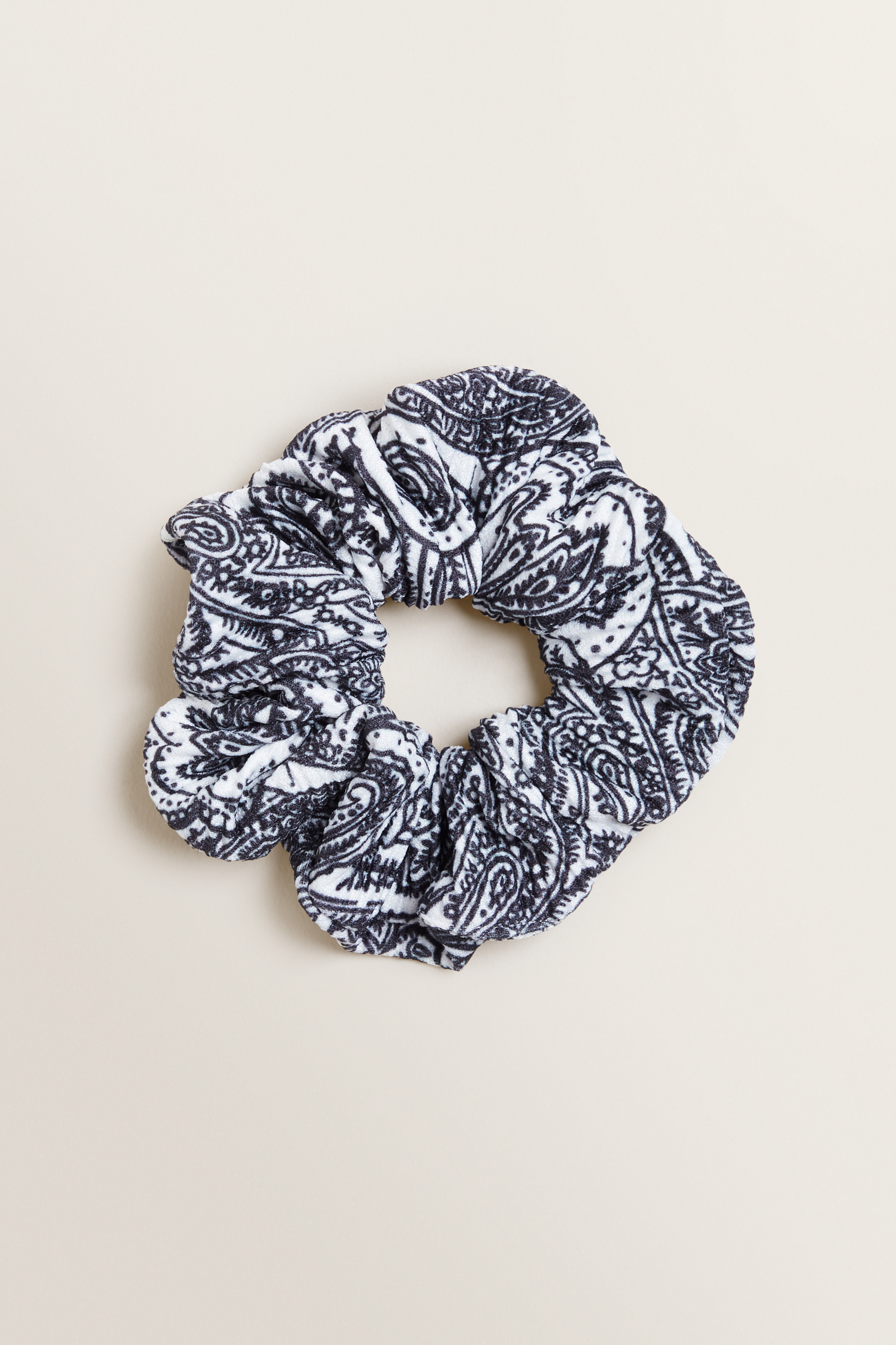 Decorated with a chic monochrome print, this Printed Scrunchie is perfect for everyday outfitting.