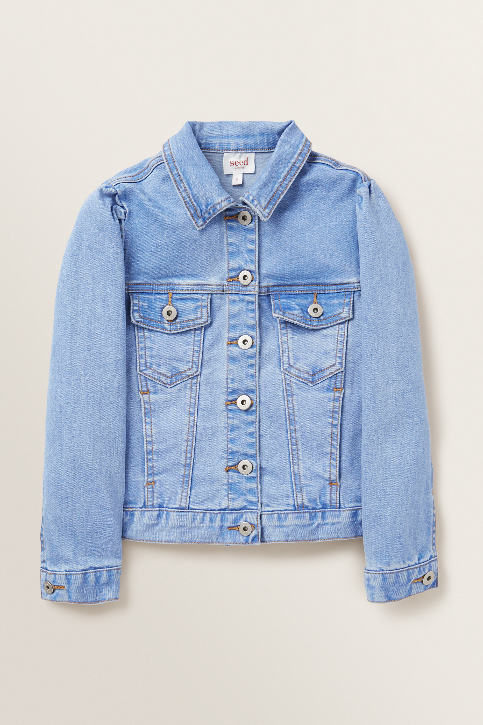 Crafted from a durable denim, this Puff Sleeve Denim Jacket is sure to be her wardrobe pick of the season. It features two functional pockets, long sleeves, button front closure and a semi-cropped body. Made from a Cotton/Elastane blend, this Puff Sleeve Denim Jacket is available in sizes 2 to 10. For care instructions, check the label inside the garment.