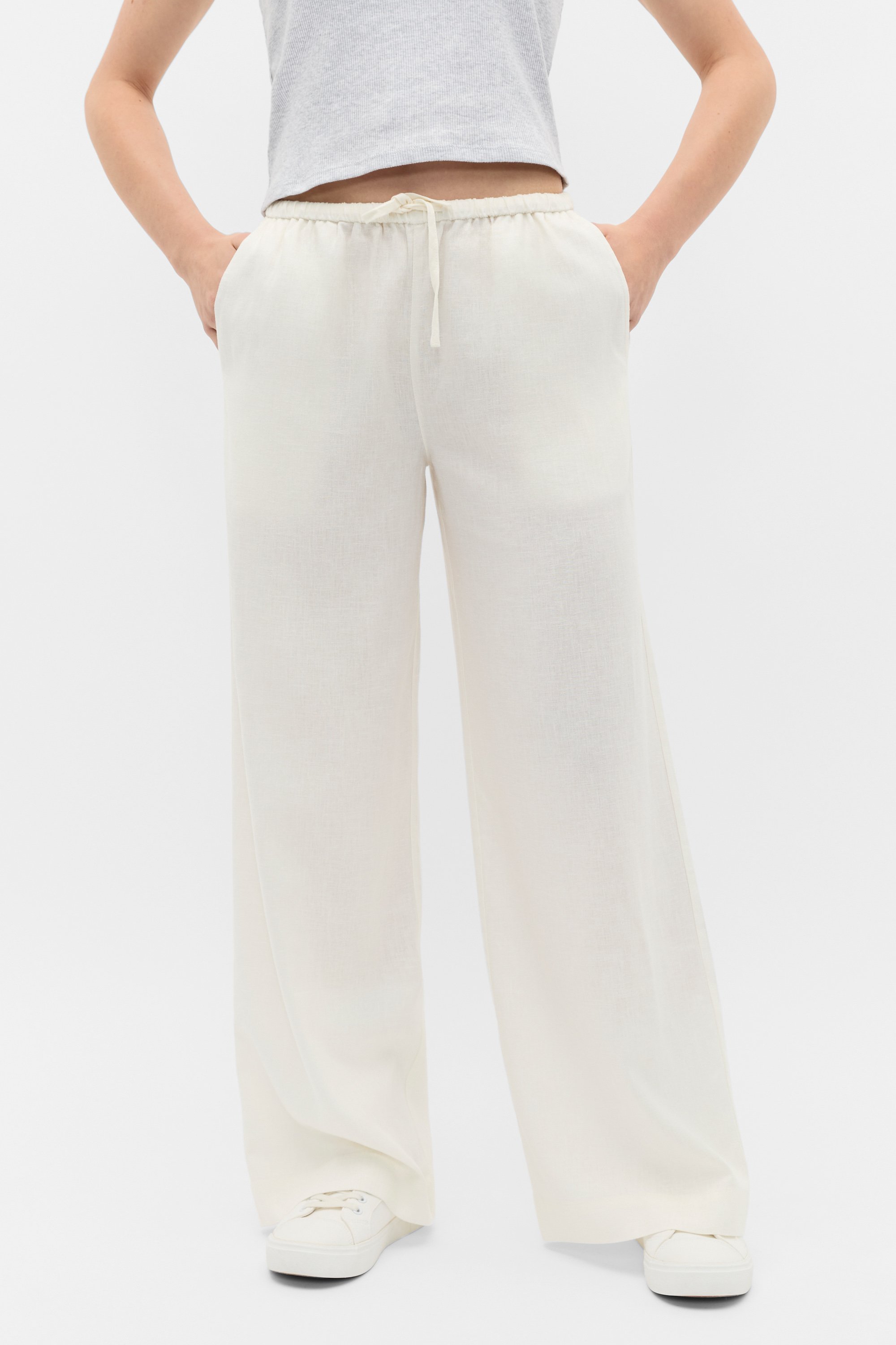 Comfortable and versatile, these pull-on pants are perfect for summer. Crafted in a lightweight blend containing linen, they feature an elasticated with a drawstring for a comfortable fit, and a straight leg shape.