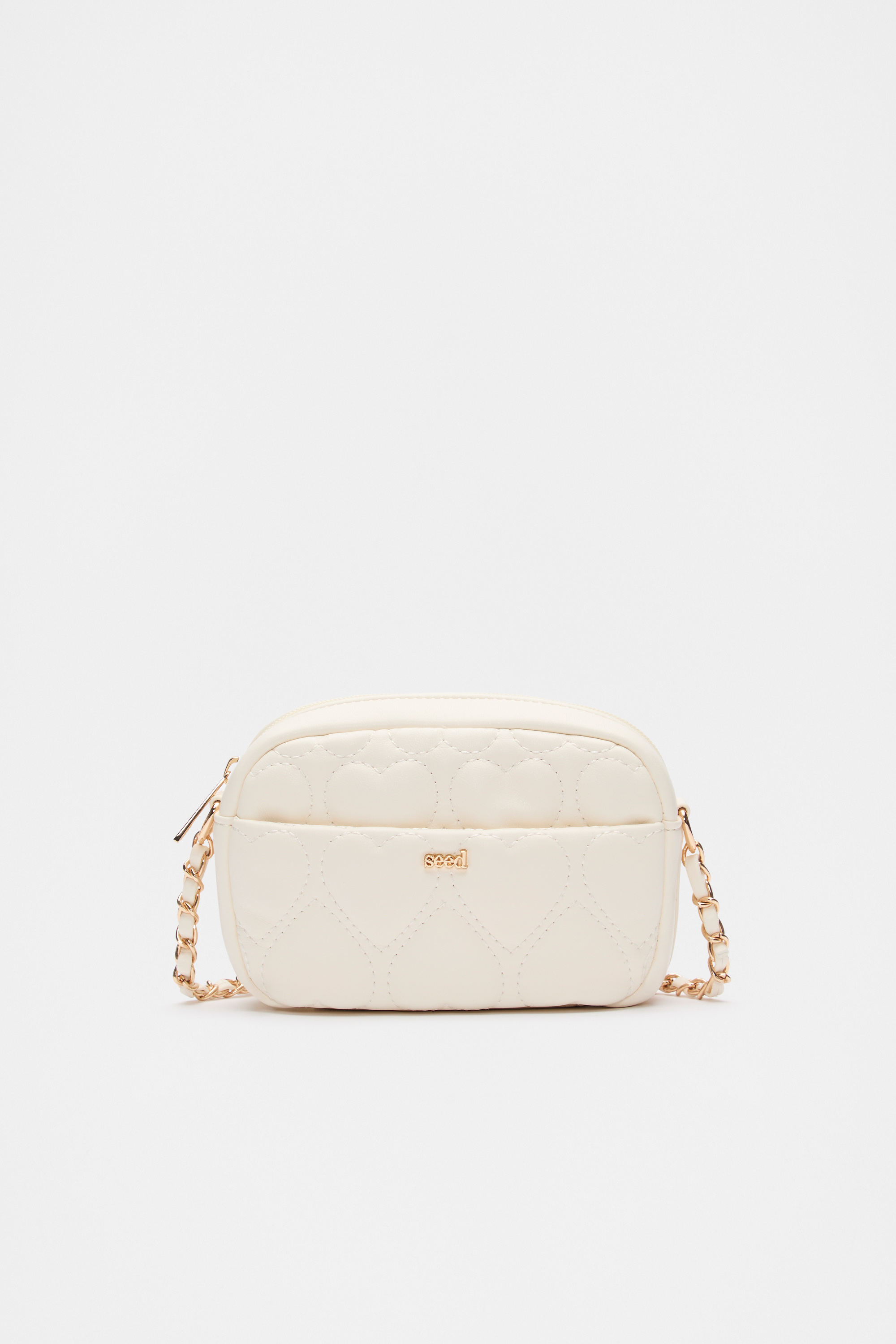 With a charming heart design, this bag is one she'll treasure forever. It features a quilted front, top zip closures, a front pocket, a Seed logo detail and a gold-look crossbody chain.