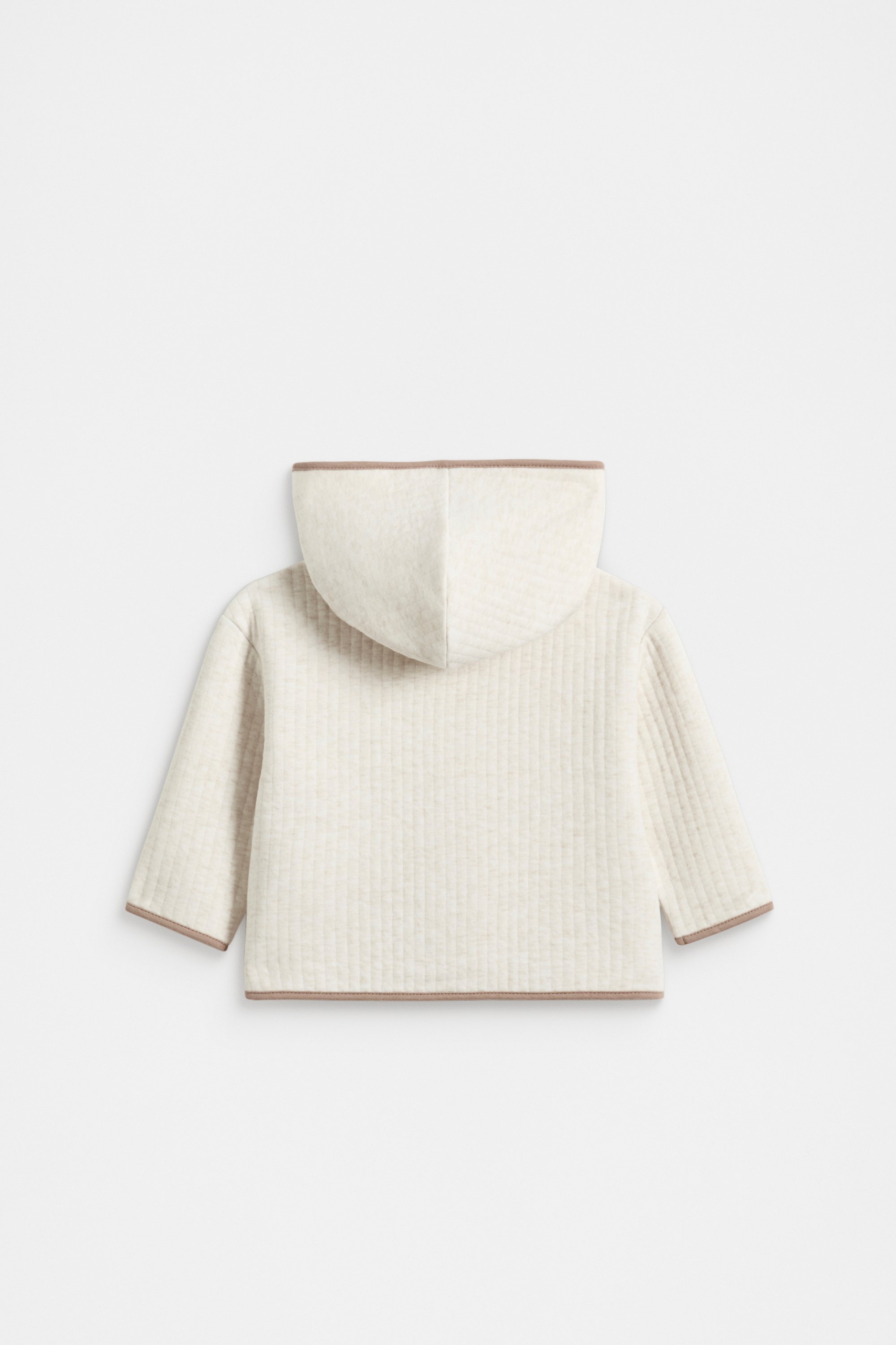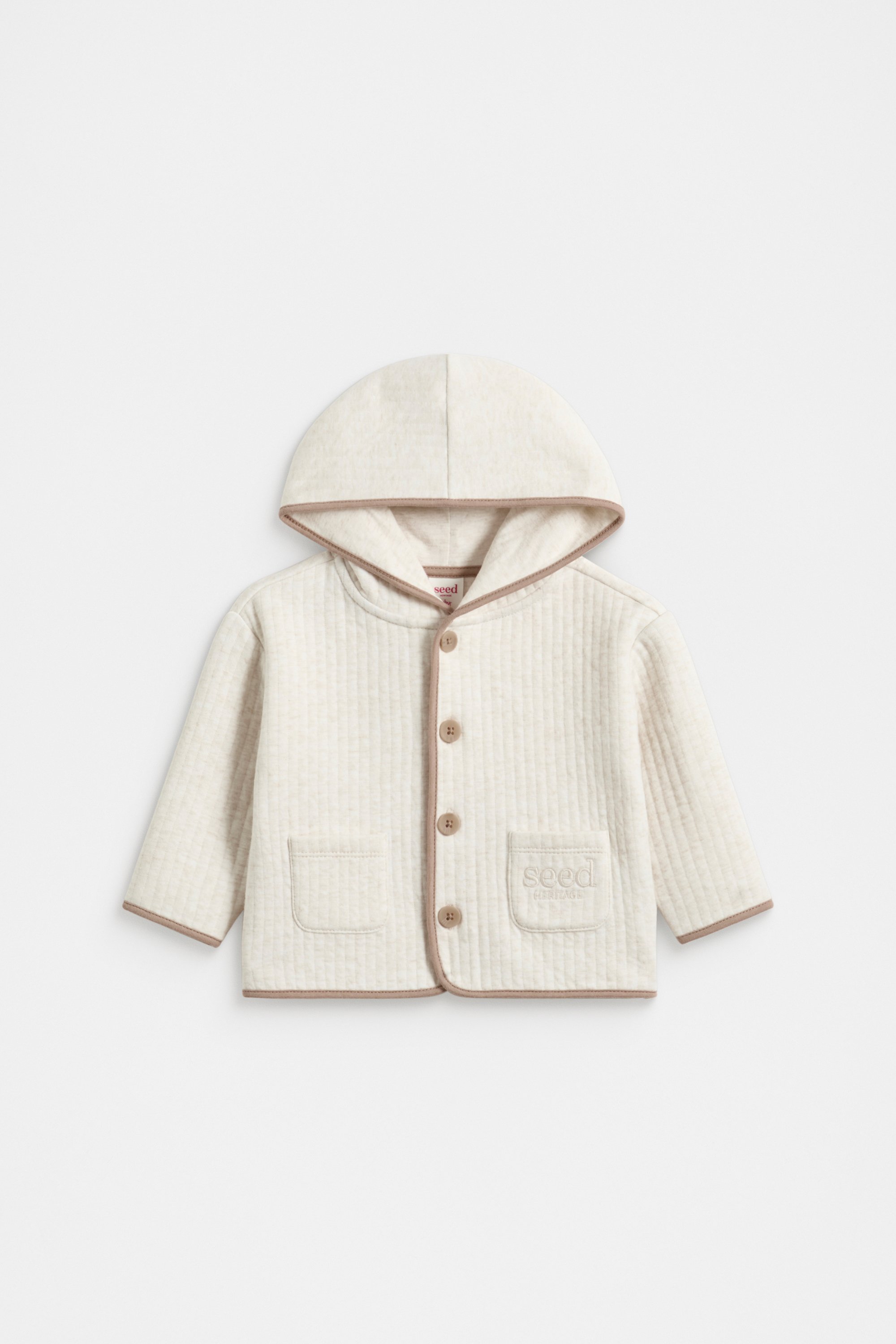 Outerwear has never looked so sweet. This jacket is crafted in a soft cotton blend and has a quilted finish. With contrast piping, it features a hood, front pockets and buttons-up at the front. Complete their cosy set with the matching quilted pants.