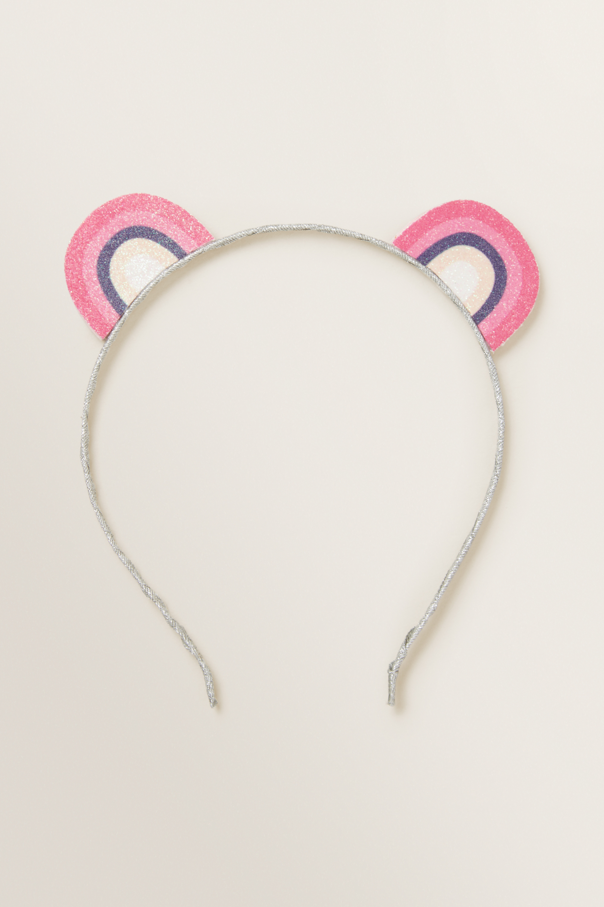 Designed with fabric ears, this Rainbow Headband features a secure frame to hold hair firmly in place.