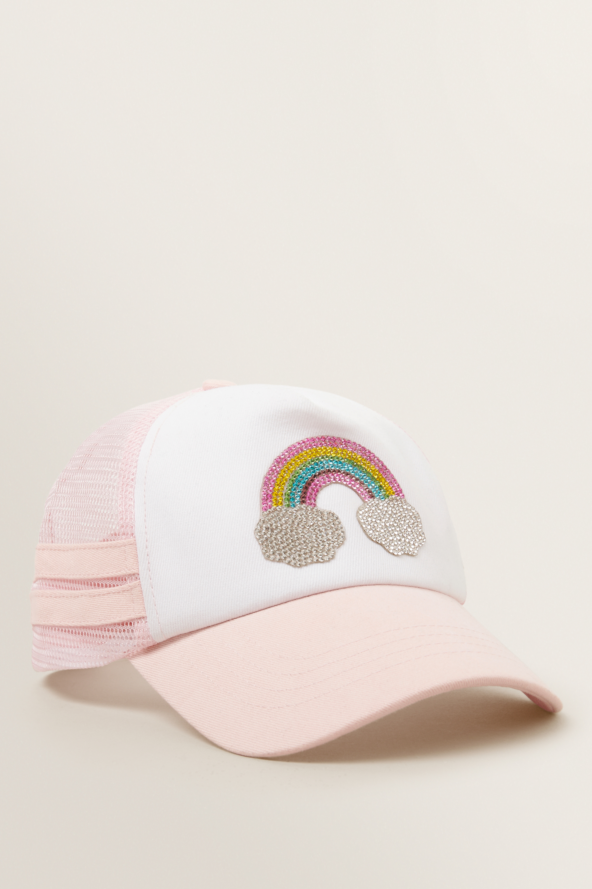 This Rainbow Jewel Cap is detailed with a jewel motif, panelled crown, curved peak, mesh side panels and adjustable backing for a comfortable fit.