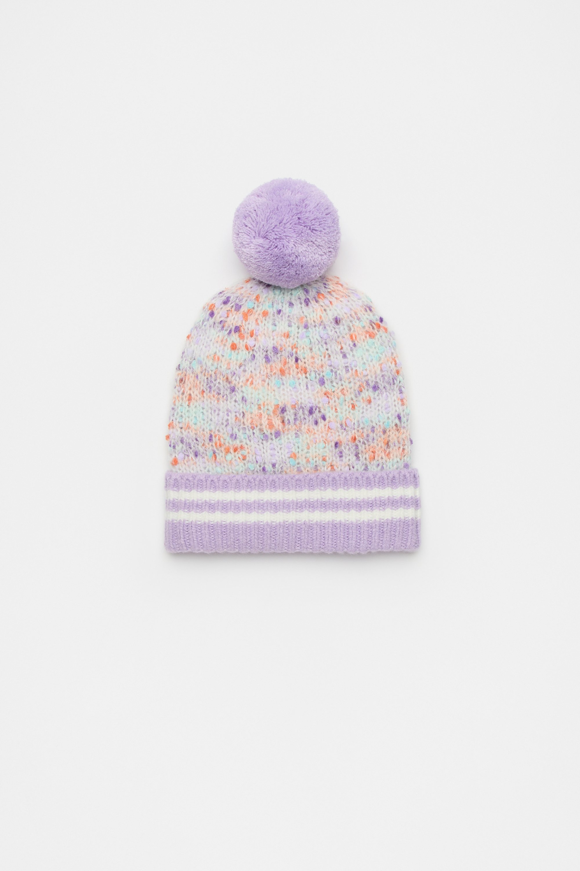 Complete her winter-time outfit with this sweet and soft knit beanie. So cosy, it features a fluffy pom pom and a multicoloured design. Pair with the matching apparel for the cutest coordinated set.