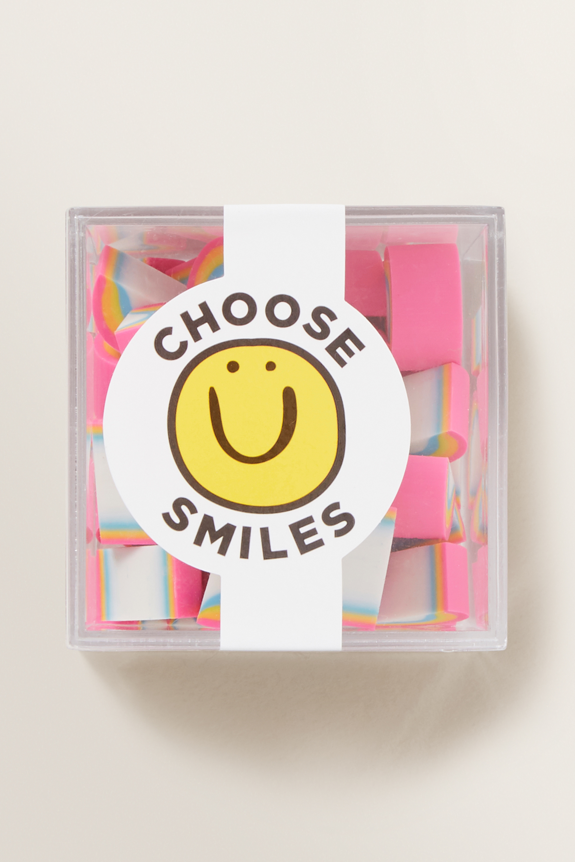 Erase pencilled mistakes, with this Rainbow Mini Eraser Box. This is not a toy. Potential choking hazard. Not recommended for children 3 years and under.