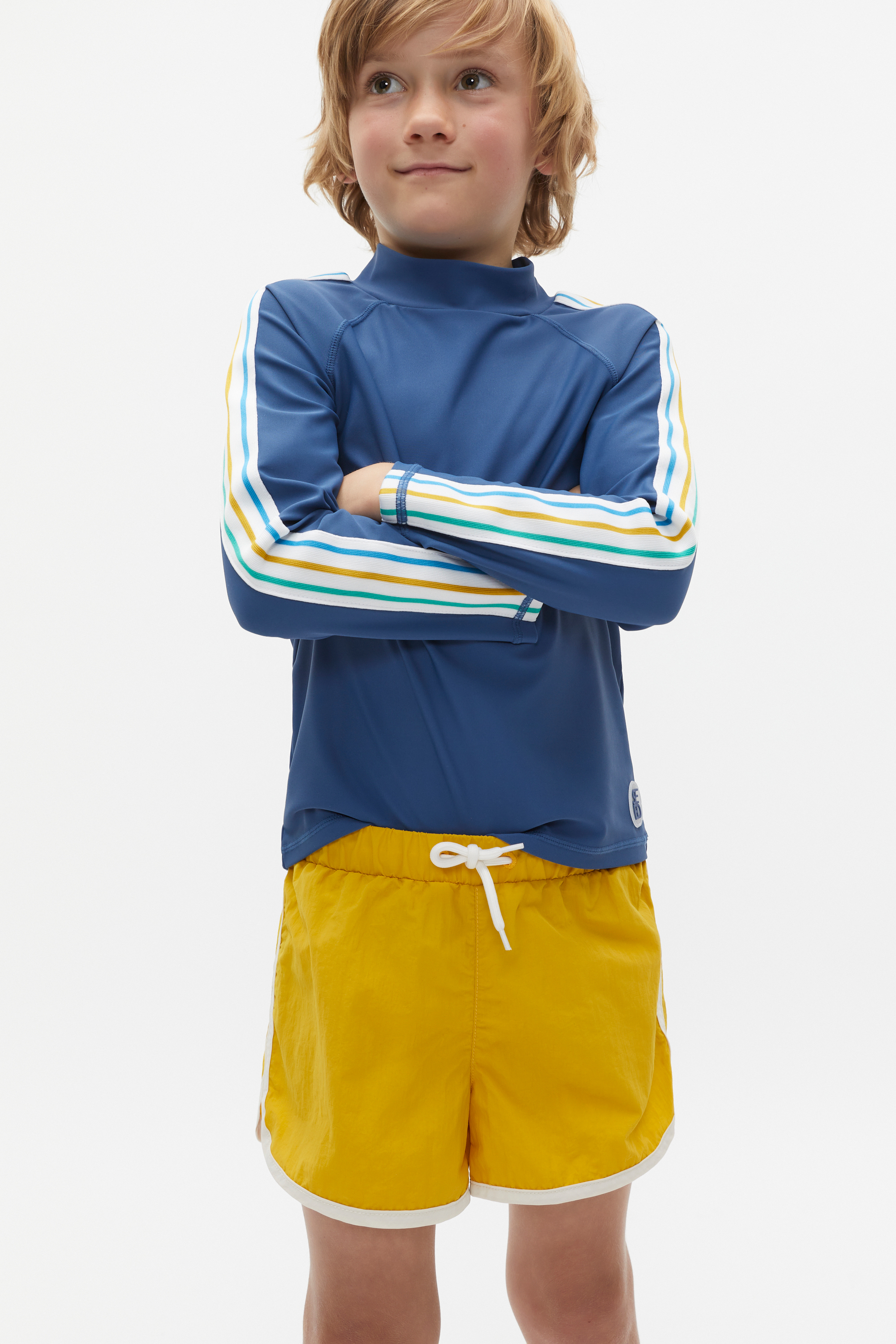 In a retro style, these boardshorts are an instant summer classic. They feature an elasticated waistband, drawstring and piping details.