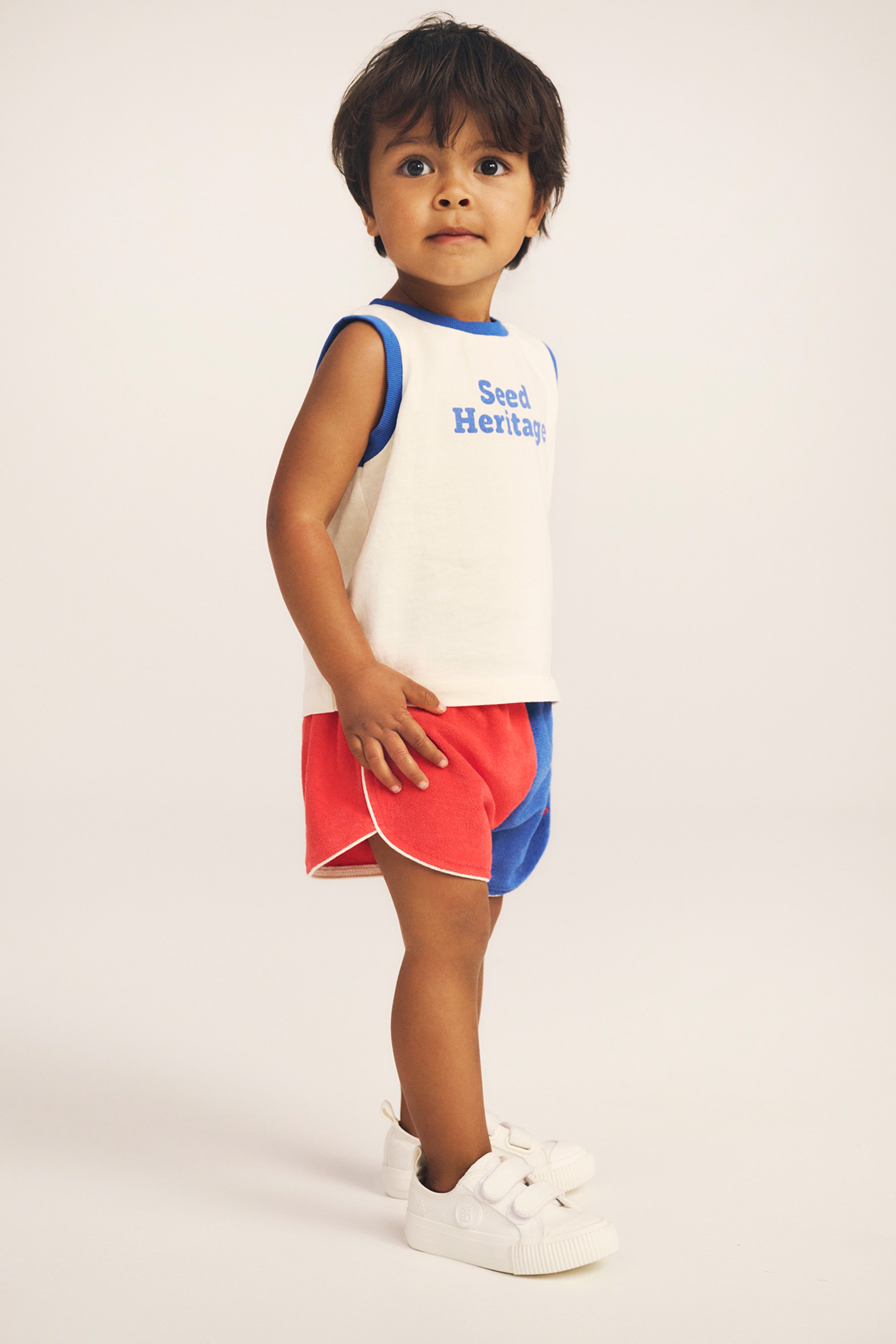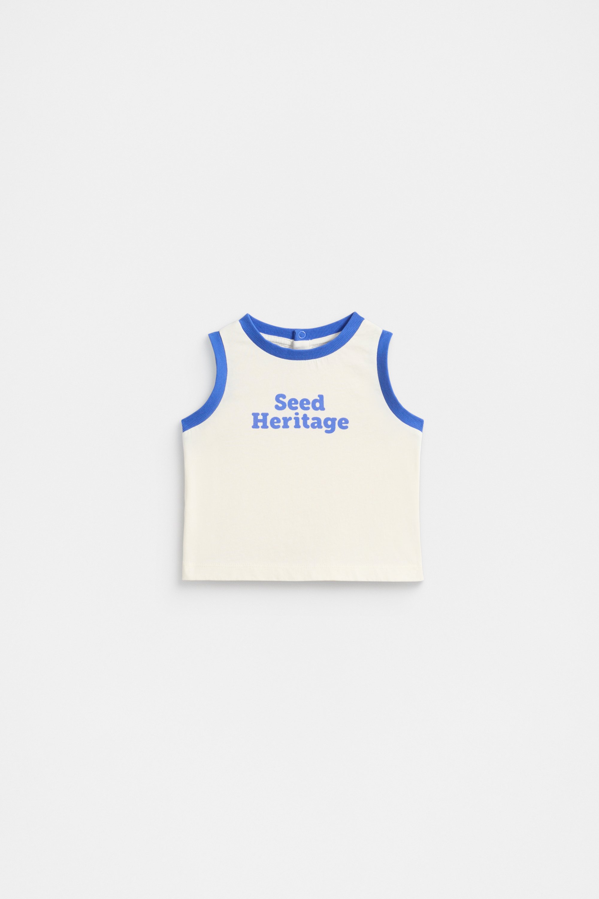 Perfect for warm sunny days, this tank features a retro Seed Heritage logo design with contrast trims. Crafted in premium cotton, it has an elasticated trim and fastens at the back of the neck with snap buttons.
