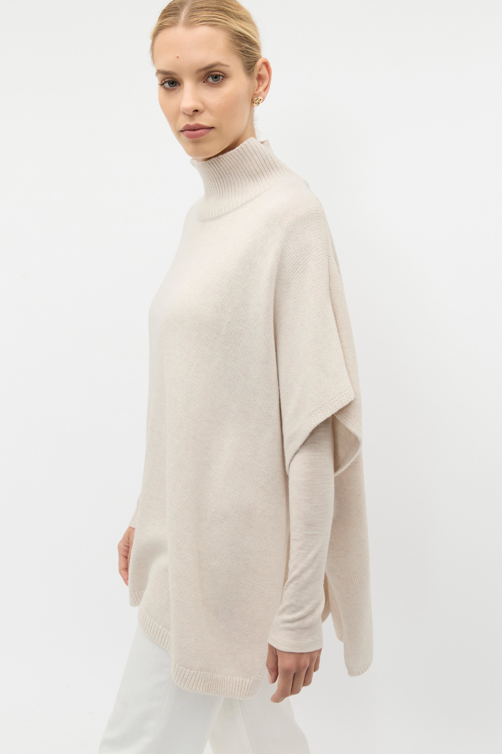 Rib Detail Poncho  Oat Marle  hi-res Rib Detail Poncho  Oat Marle  hi-res Rib Detail Poncho  Oat Marle  hi-res Rib Detail Poncho  Oat Marle  hi-res