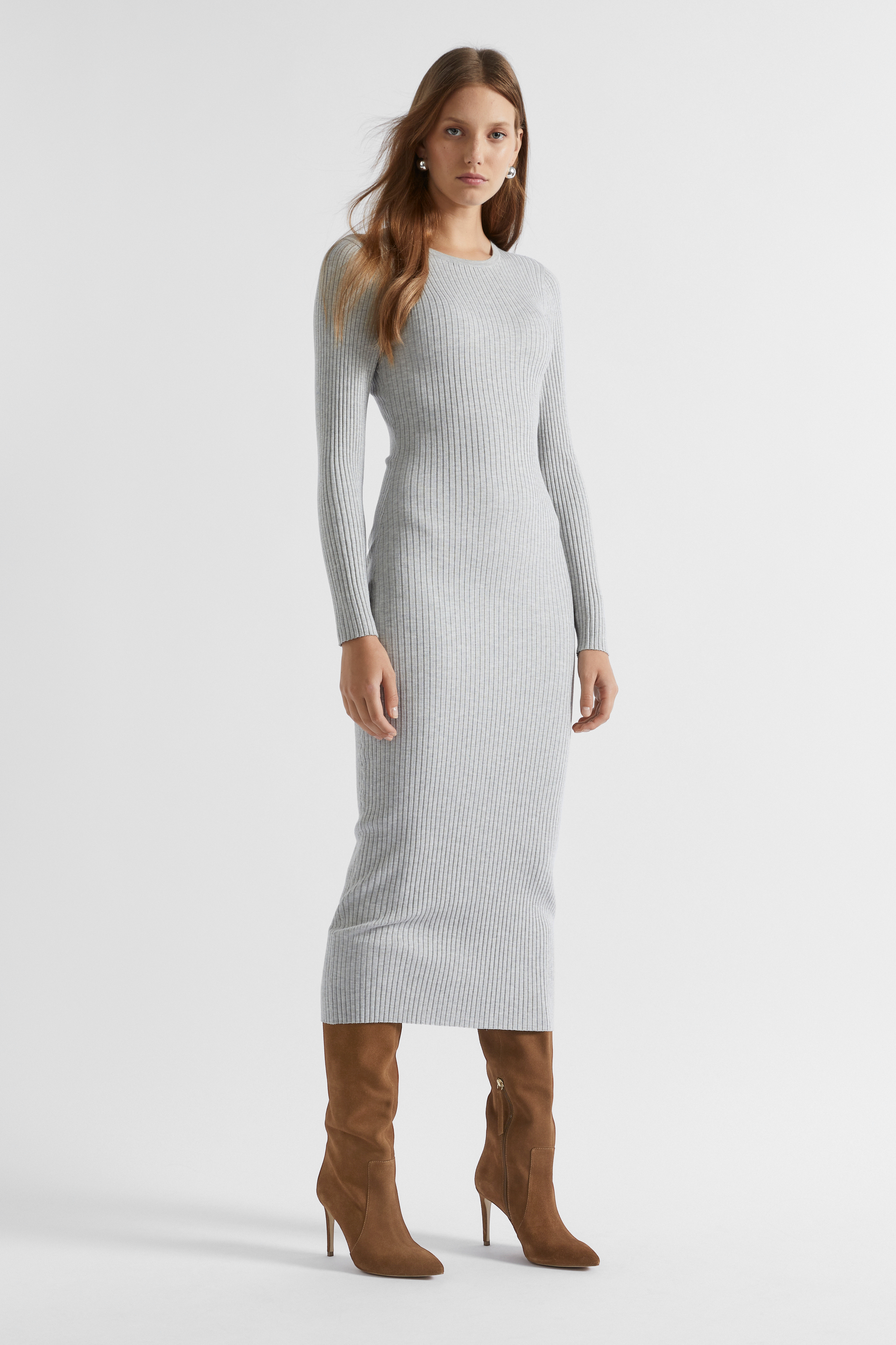 Rib Knit Crew Neck Dress  Silver Marle  hi-res Rib Knit Crew Neck Dress  Silver Marle  hi-res Rib Knit Crew Neck Dress  Silver Marle  hi-res Rib Knit Crew Neck Dress  Silver Marle  hi-res