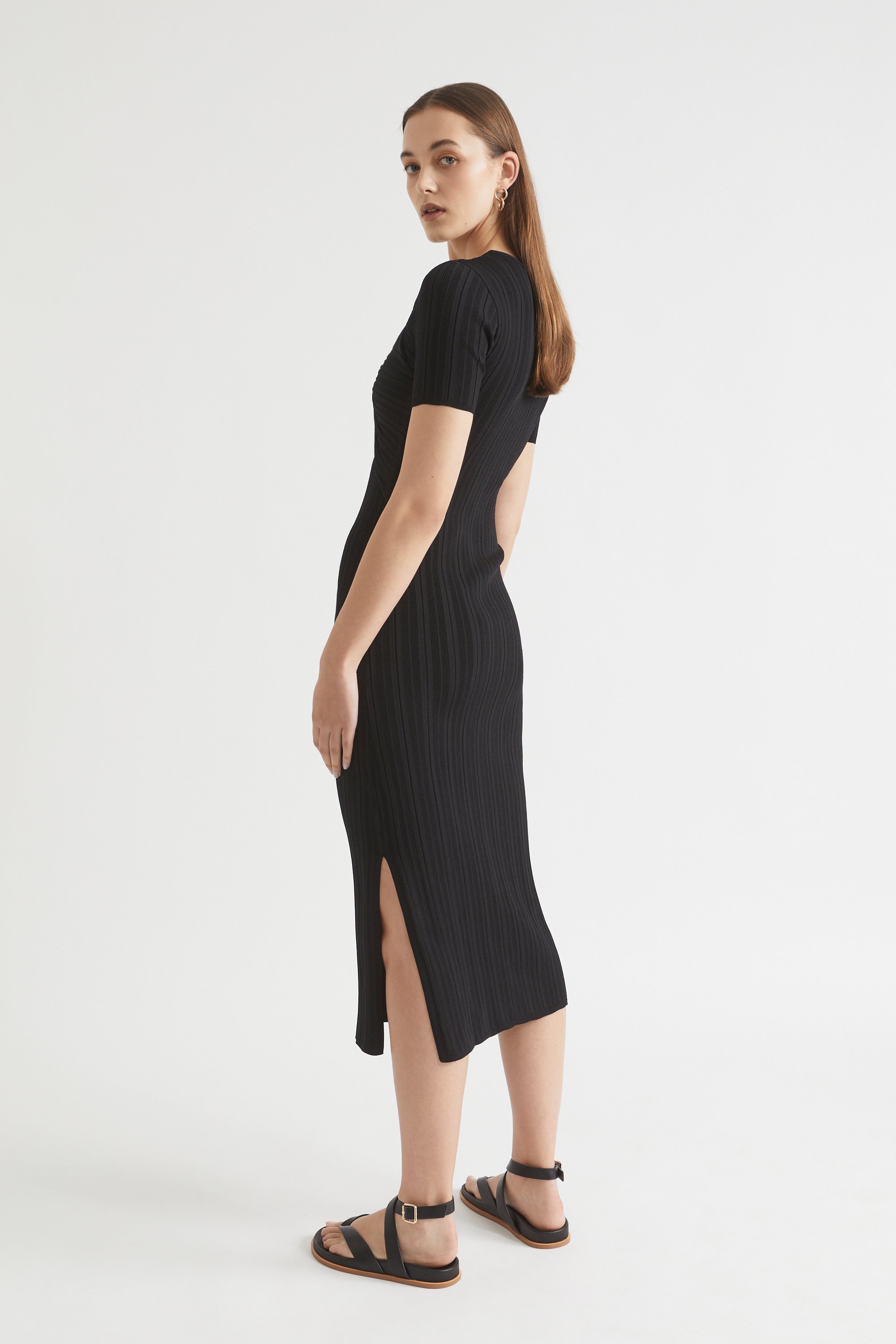 Rib Knit Twist Front Midi Dress  Black  hi-res Rib Knit Twist Front Midi Dress  Black  hi-res Rib Knit Twist Front Midi Dress  Black  hi-res Rib Knit Twist Front Midi Dress  Black  hi-res