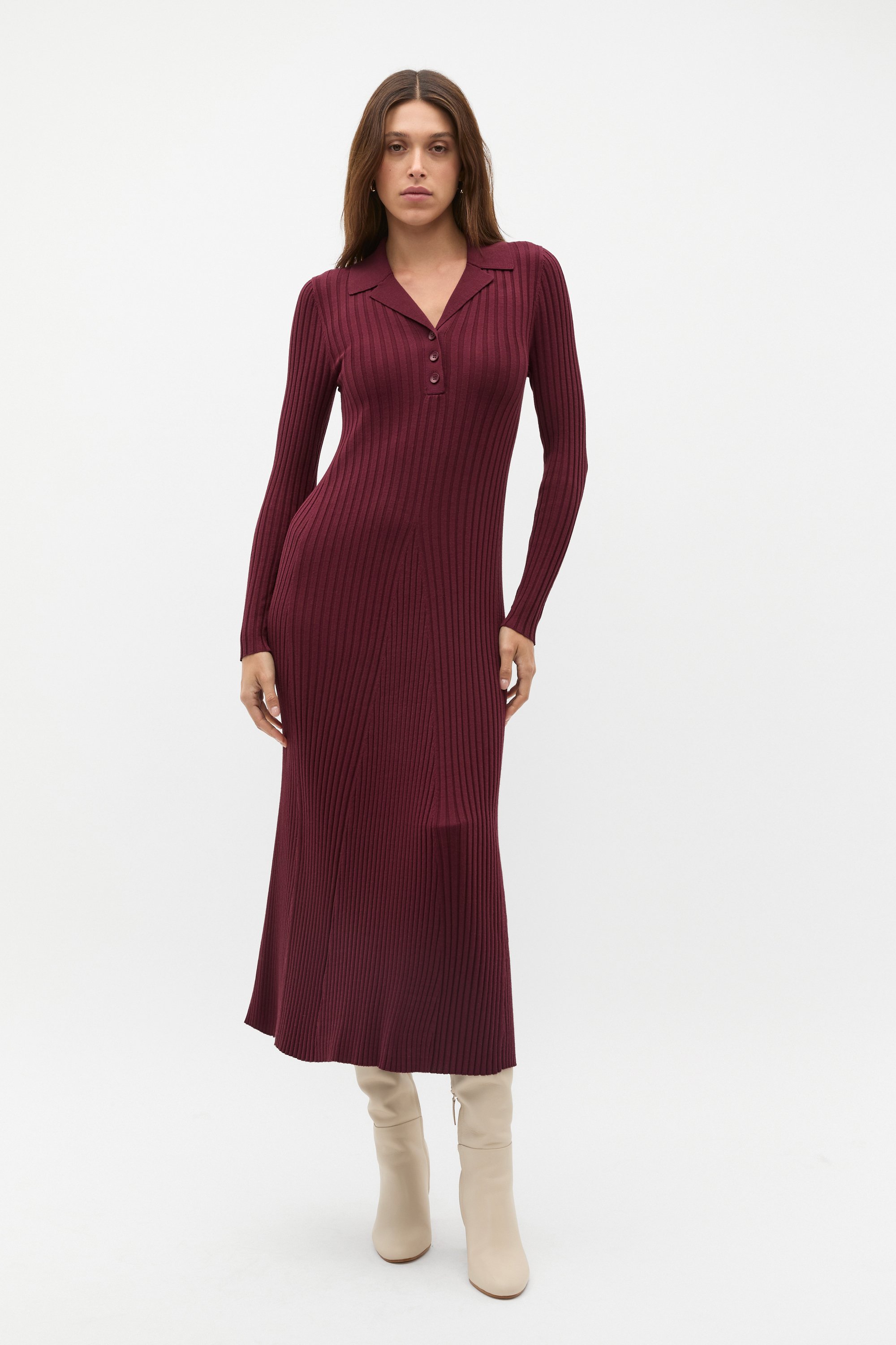 Rib Polo Knit Midi Dress  Plum Red  hi-res Rib Polo Knit Midi Dress  Plum Red  hi-res Rib Polo Knit Midi Dress  Plum Red  hi-res
