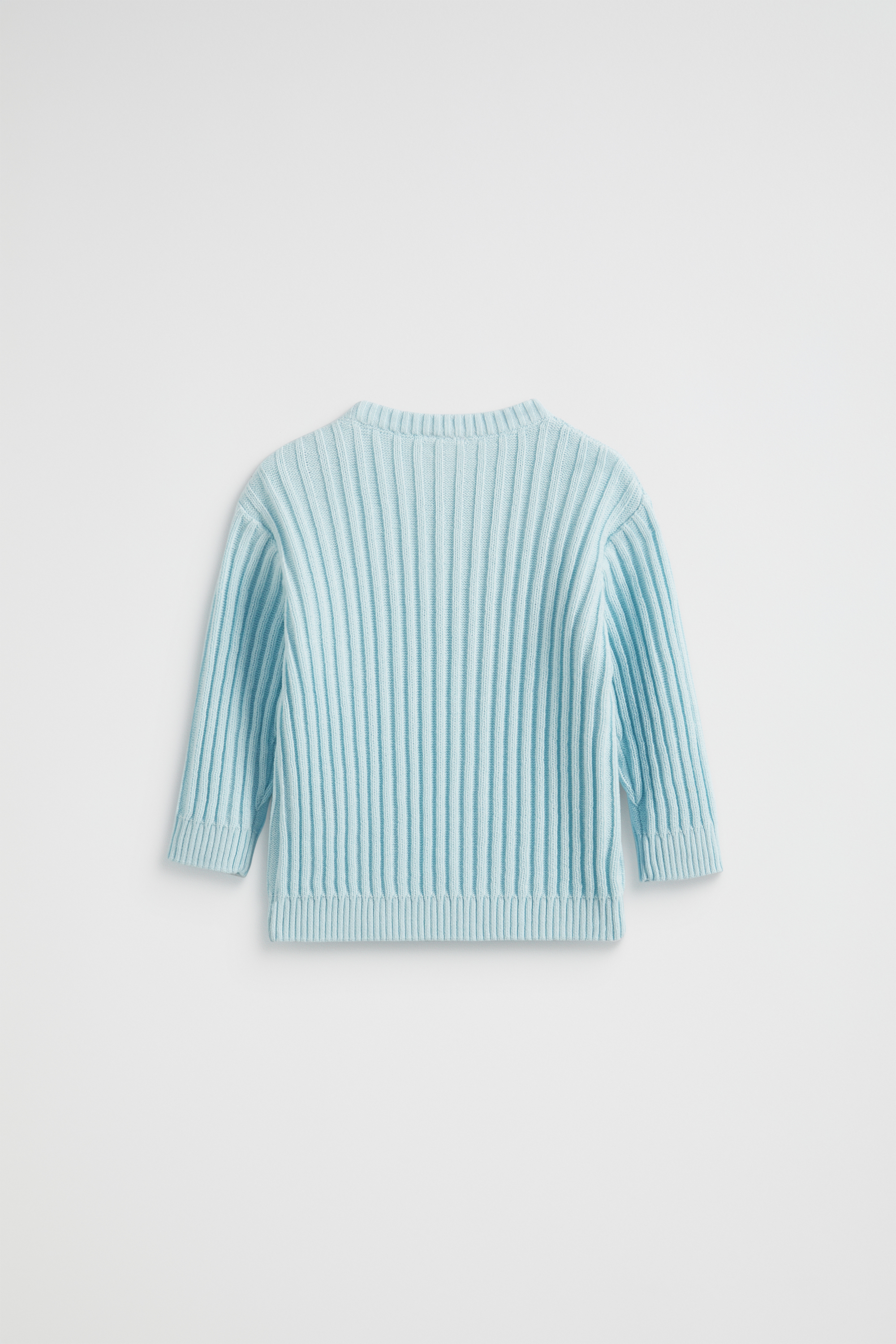 The sweetest warm layer, this jumper is ideal for your little one. It features a round neck with buttons at the shoulder for ease. In a rib knit, it has contrasting ribbed trims, and is crafted from comfortable cotton.