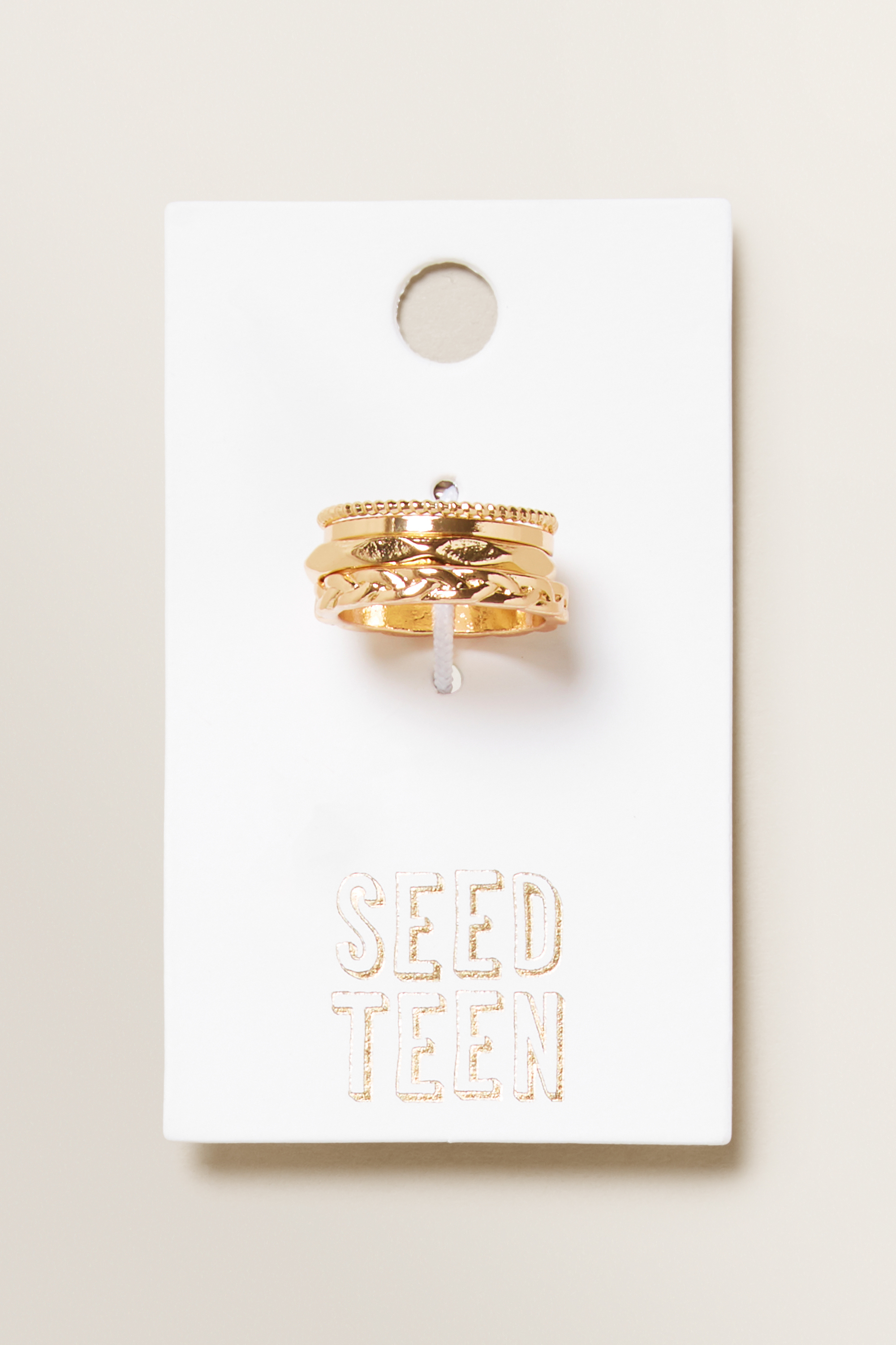 Introducing the Seed Teen Jewellery Range. This luxurious Ring Set is a perfect stackable addition to your accessory collection. Made from a Metal base, it is coated in a gold/mix paint.