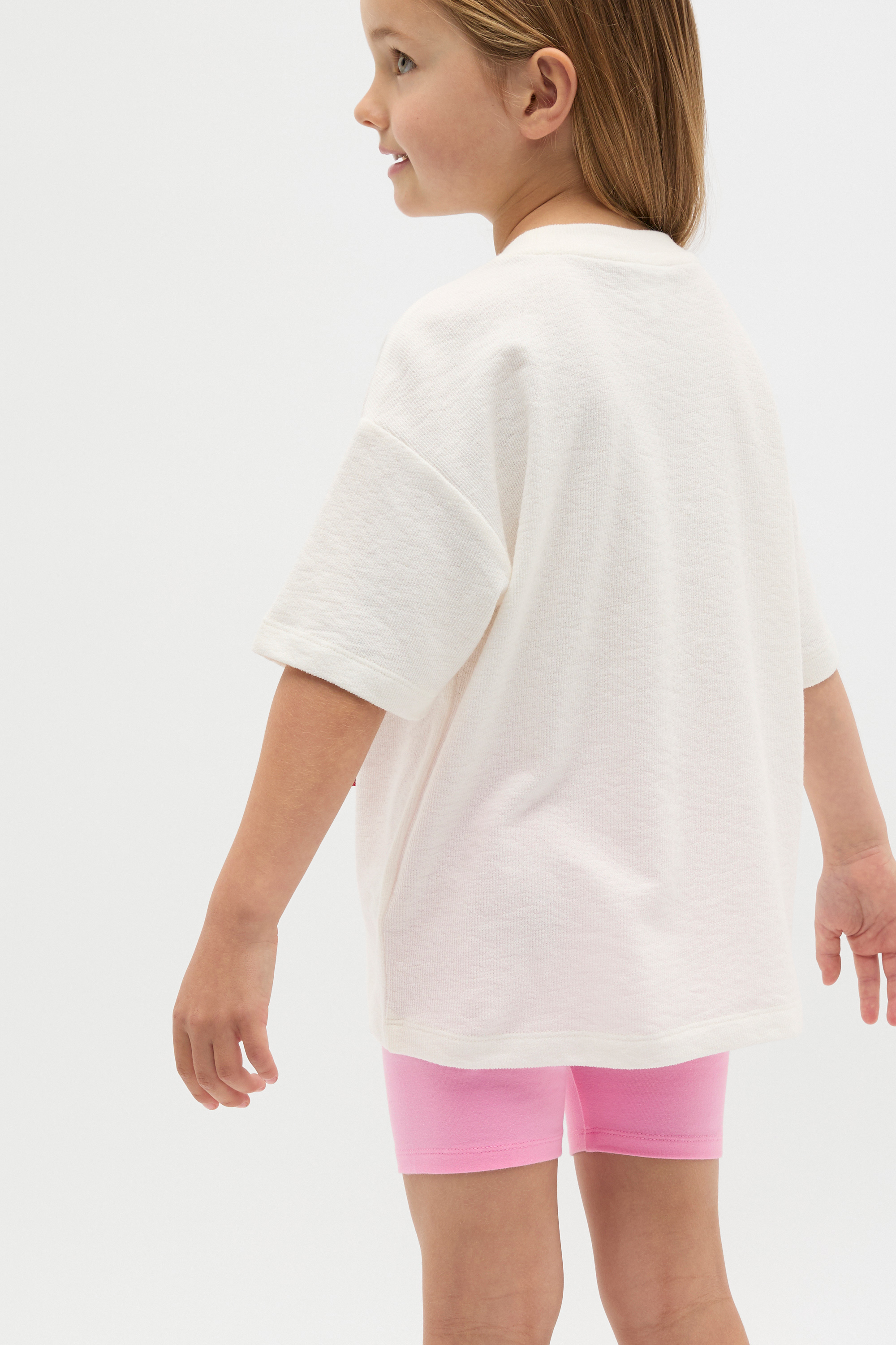 Add some colour to her wardrobe with this playfully bright tee. Crafted in premium cotton, it features a round neck, short sleeves and a design of chenille patch embroidery.