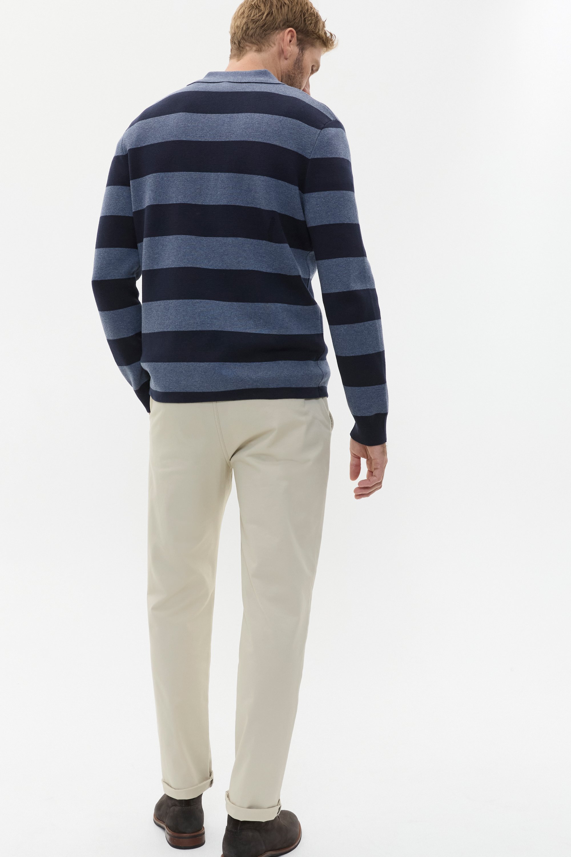 An on-trend style with a sporting feel, this jumper is ideal for his casual wardrobe. Crafted in premium cotton with a knit finish, it features a polo collar, long sleeves, ribbed cuffs and a bold stripe design. Perfect for the in-between seasons, it has a medium weight and a little stretch.